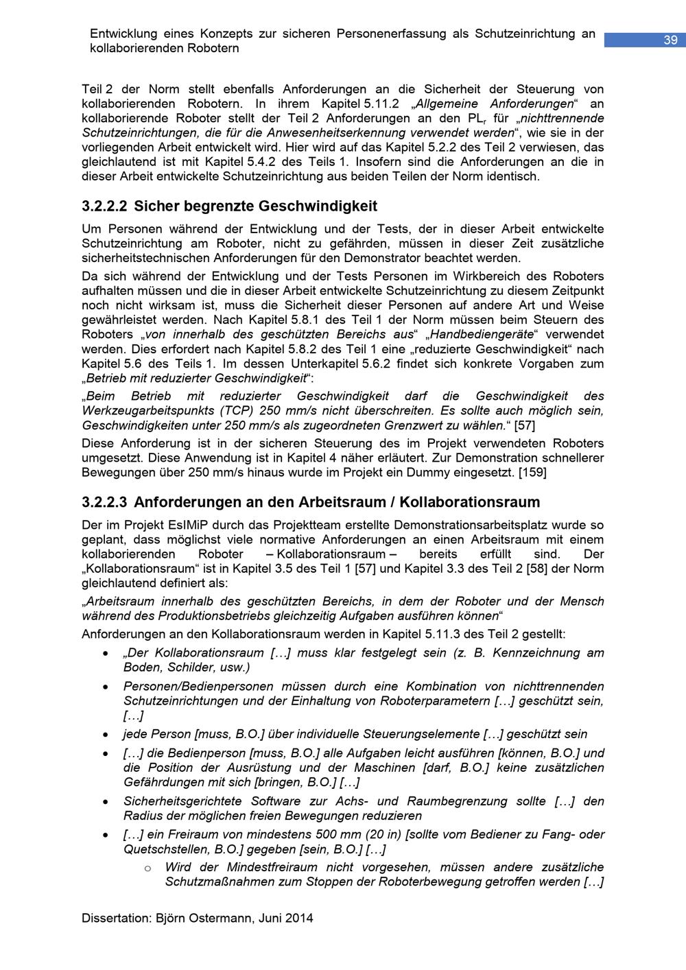 Entwicklung eines Konzepts zur sicheren Personenerfassung als Schutzeinrichtung an kollaborierenden Robotern / vorgelegt von Björn Ostermann