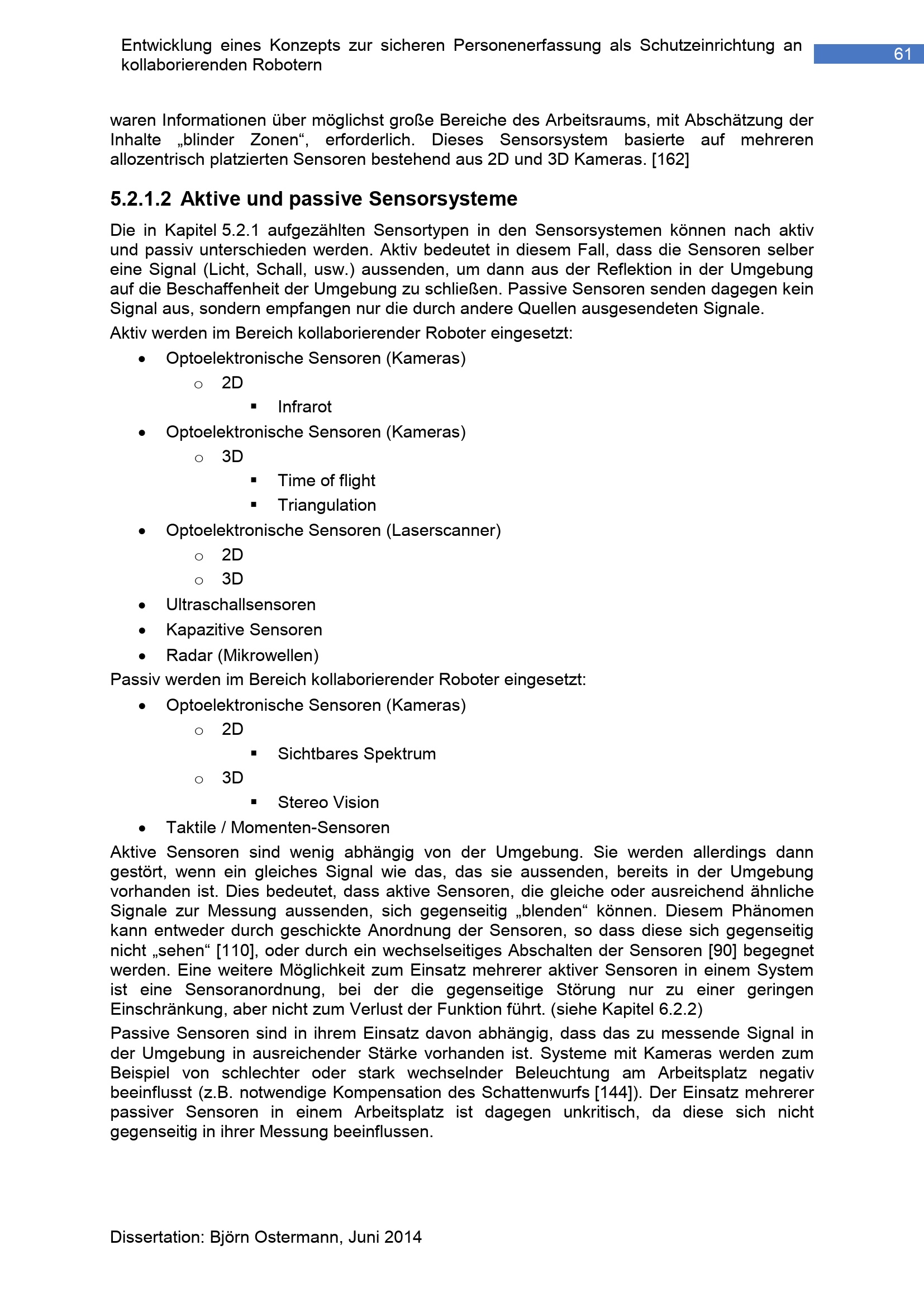 5.2.1 Untersuchung und Vergleich von eingesetzten Sensorsysteme an kollaborierenden[...]