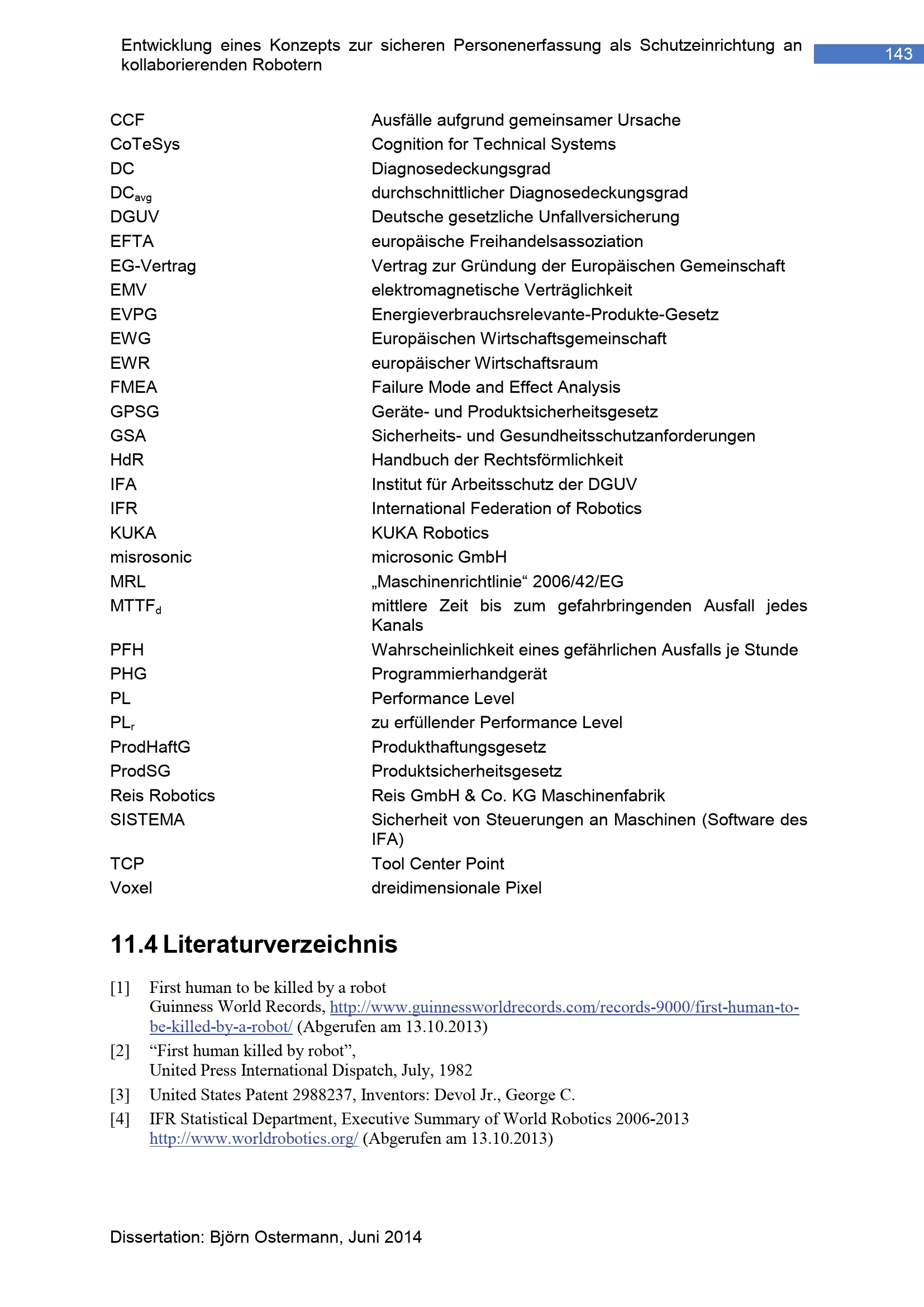 Entwicklung eines Konzepts zur sicheren Personenerfassung als Schutzeinrichtung an kollaborierenden Robotern / vorgelegt von Björn Ostermann