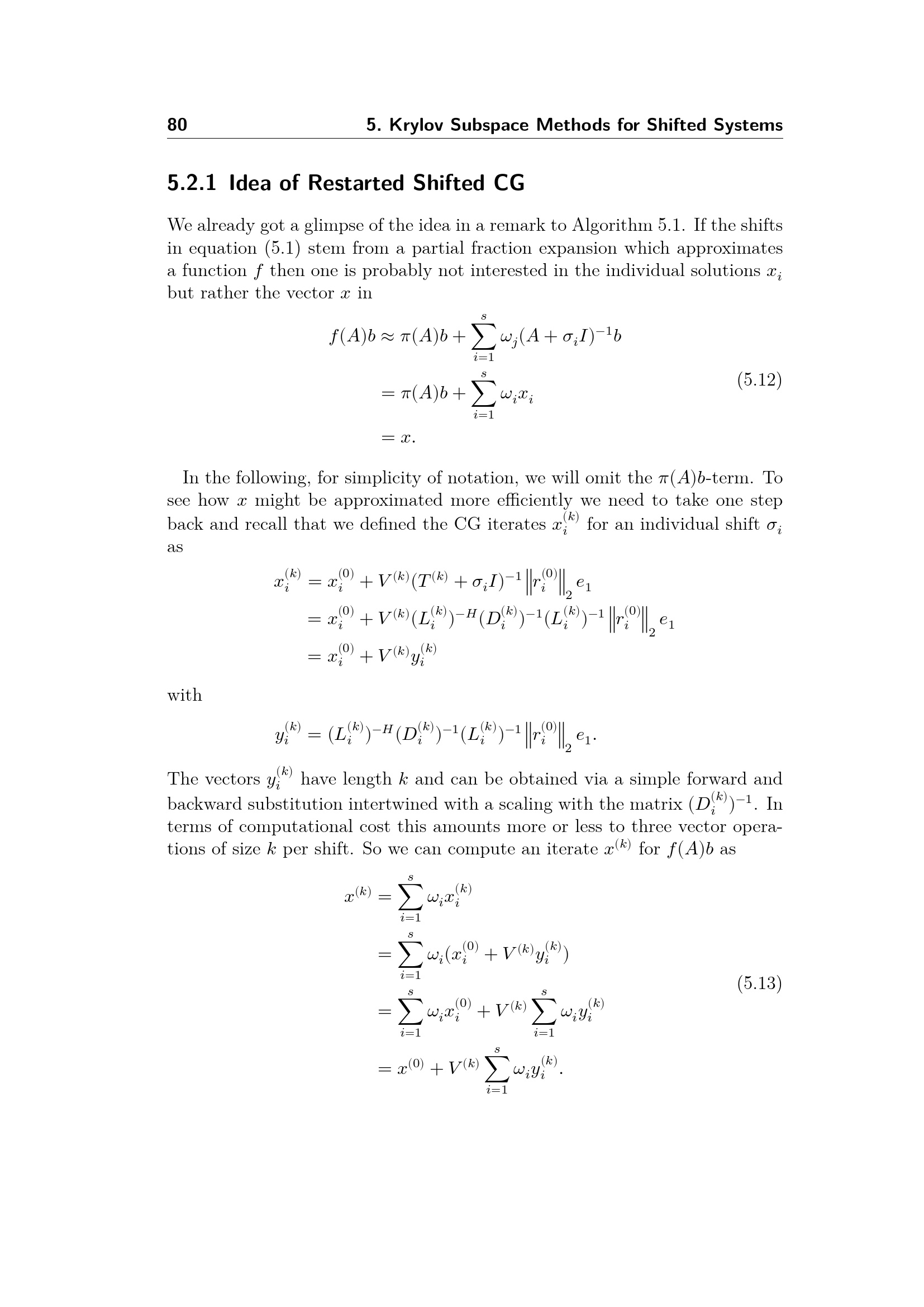 Idea of Restarted Shifted CG