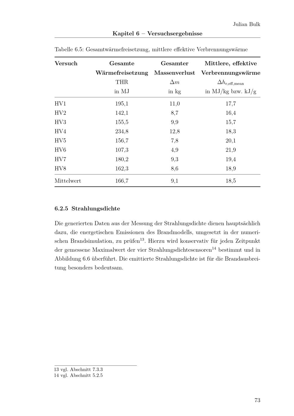 Auswertung der Hauptversuche und Herleitung des Brandmodells