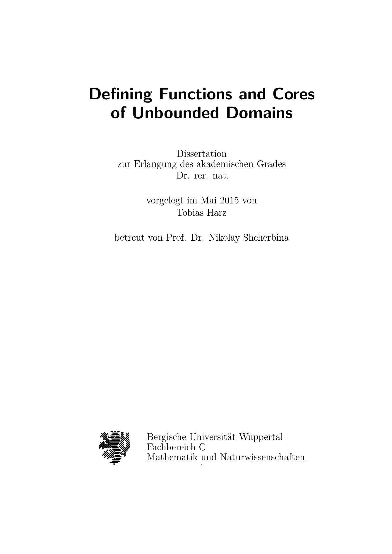 Defining functions and cores of unbounded domains / von Tobias Harz