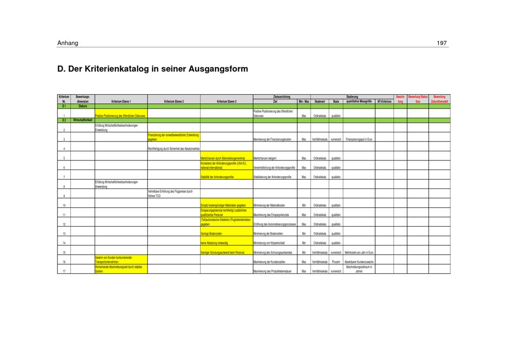 D. Der Kriterienkatalog in seiner Ausgangsform