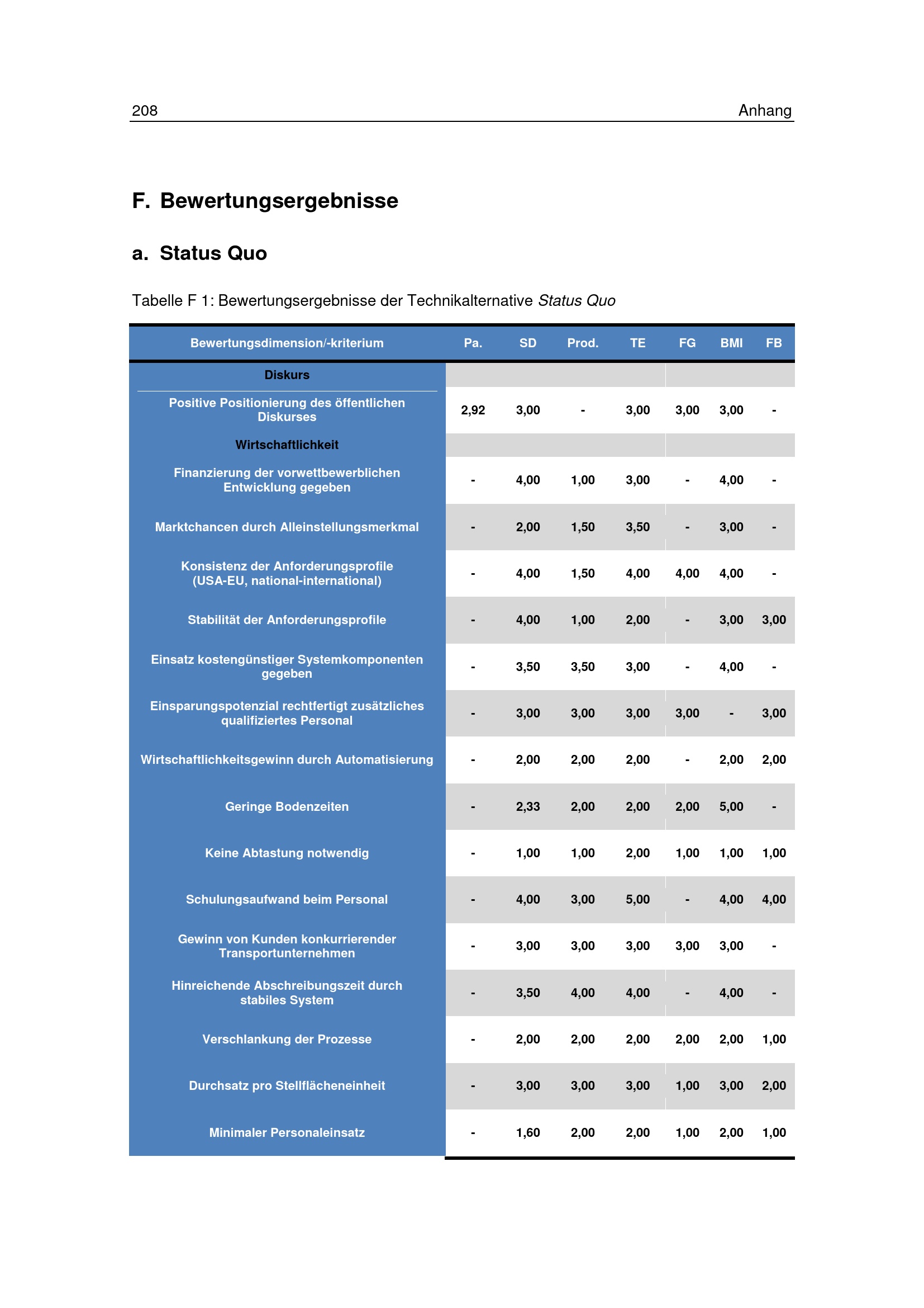 F. Bewertungsergebnisse