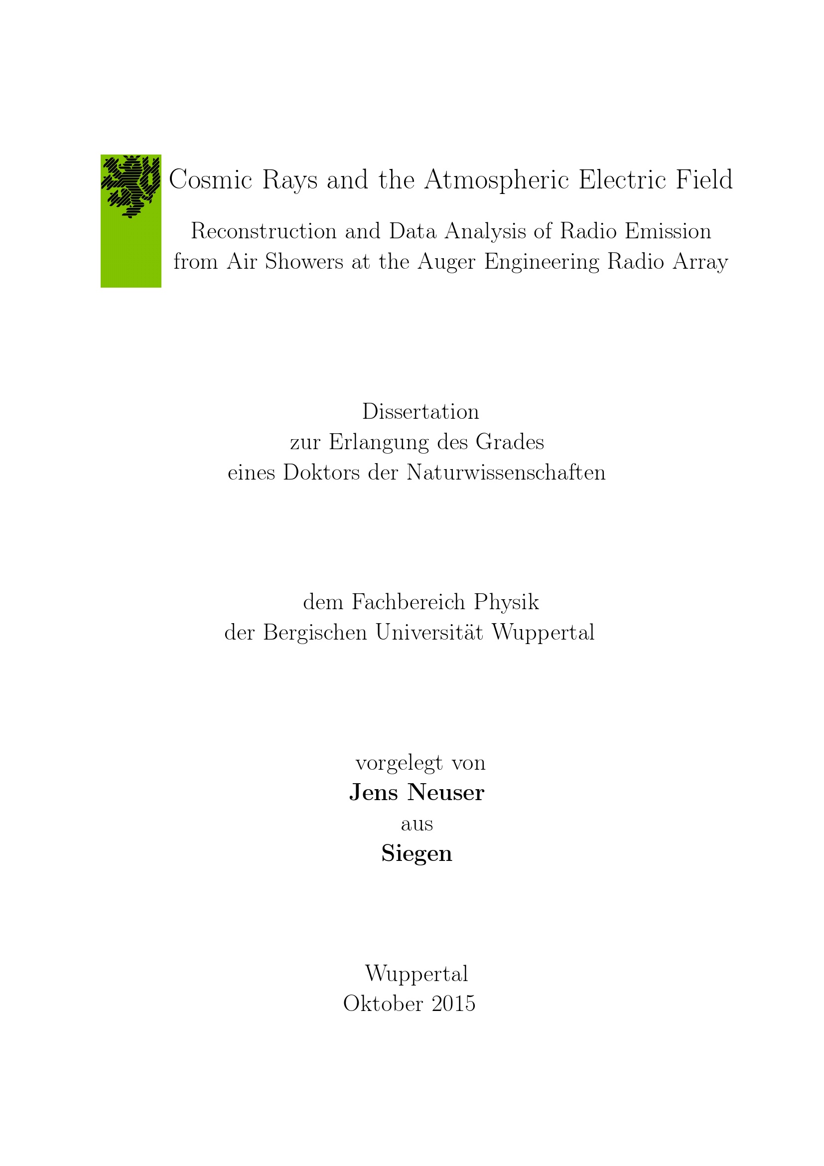 Cosmic rays and the atmospheric electric field : reconstruction and data analysis of radio emission from air showers at the Auger engineering radio array / vorgelegt von Jens Neuser aus Siegen
