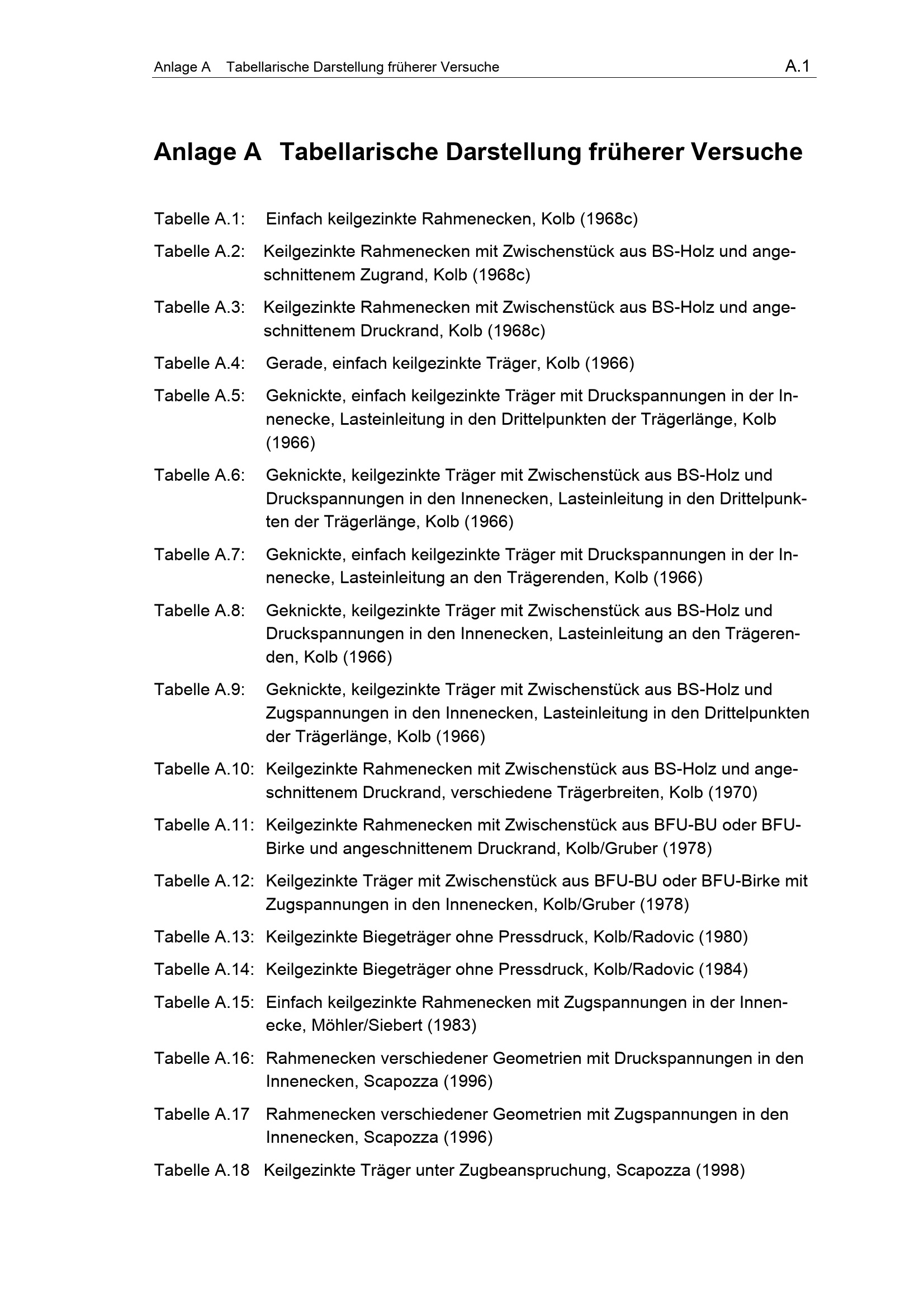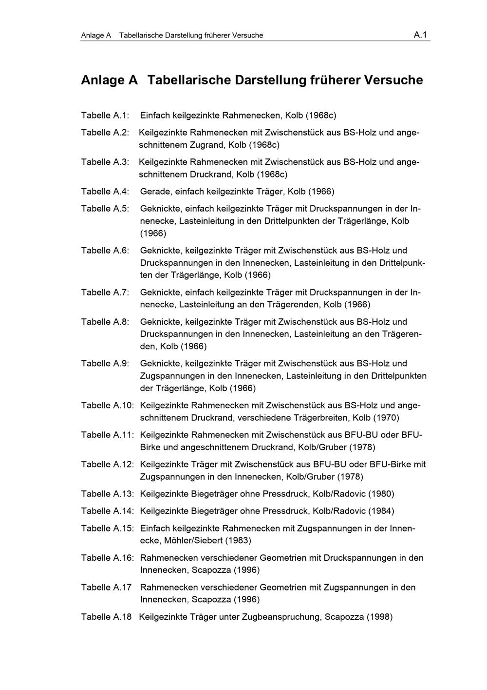 Tabelle A.1:Einfach keilgezinkte Rahmenecken, Kolb (1968c)
