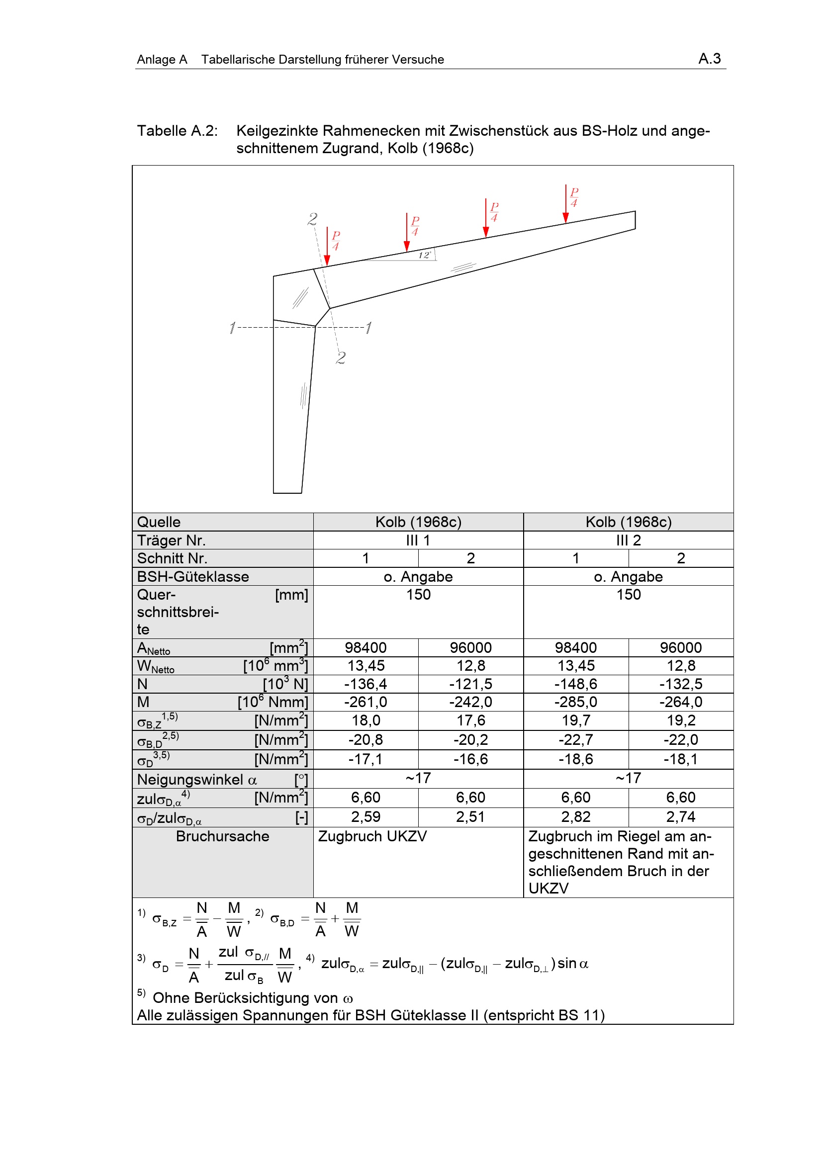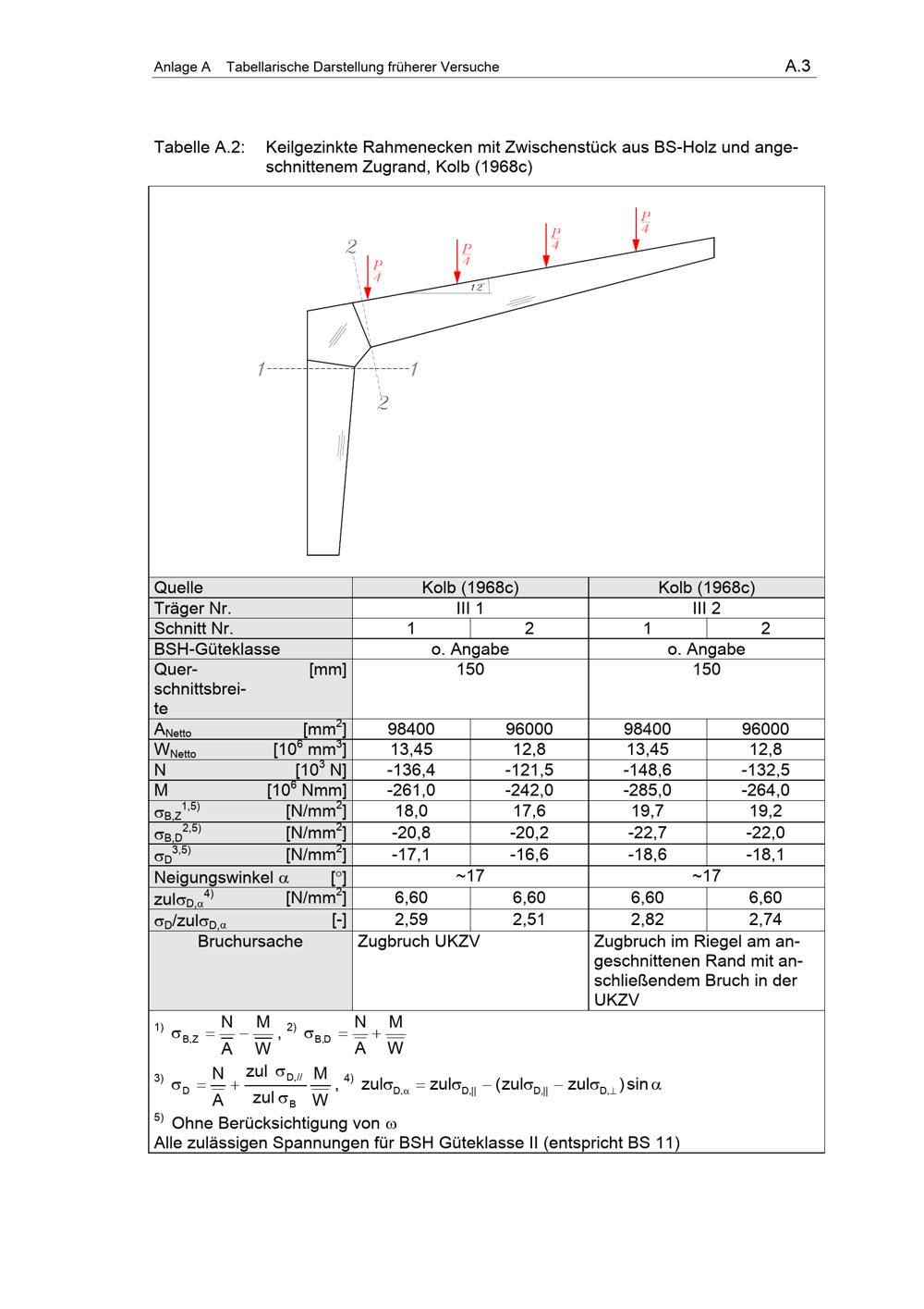 Tabelle A.2:Keilgezinkte Rahmenecken mit Zwischen