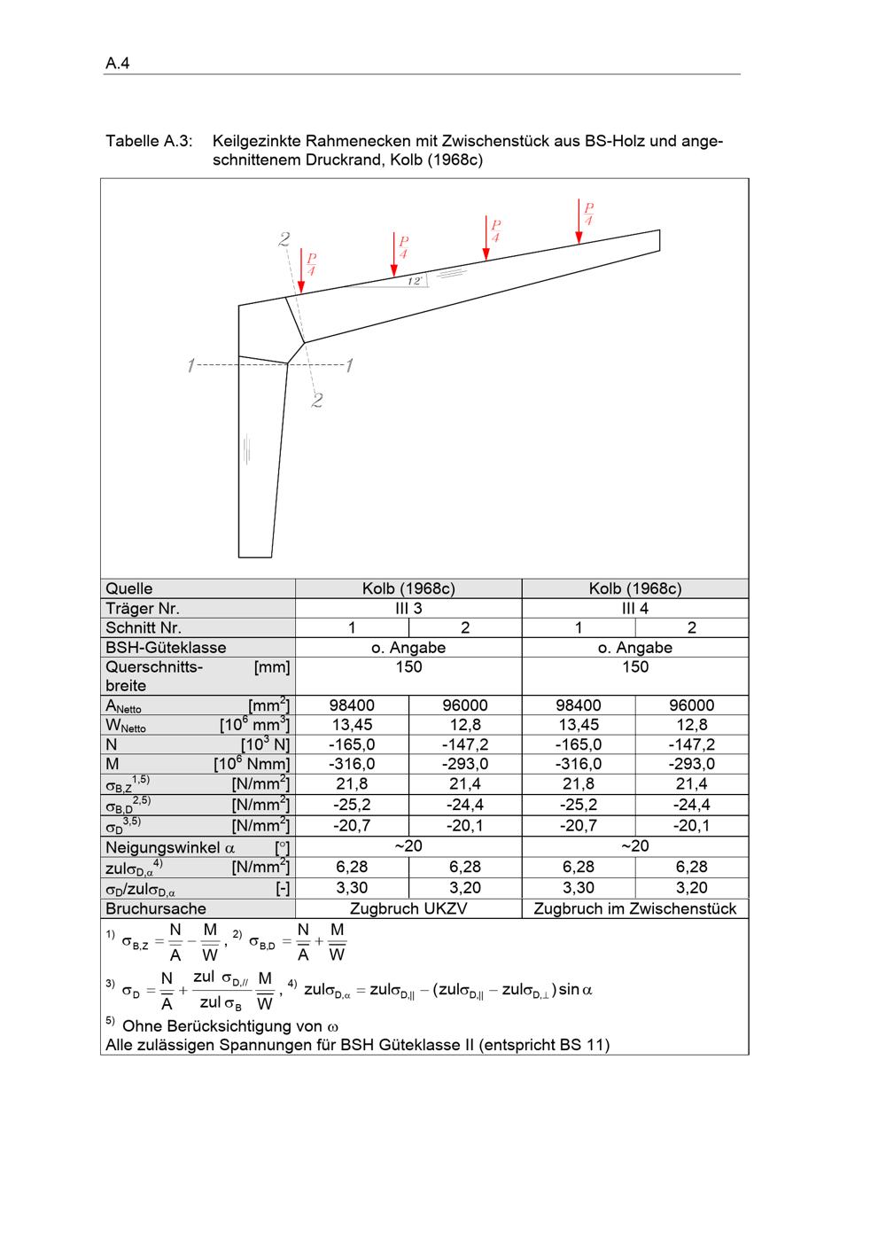 Tabelle A.3:Keilgezinkte Rahmenecken mit Zwischen