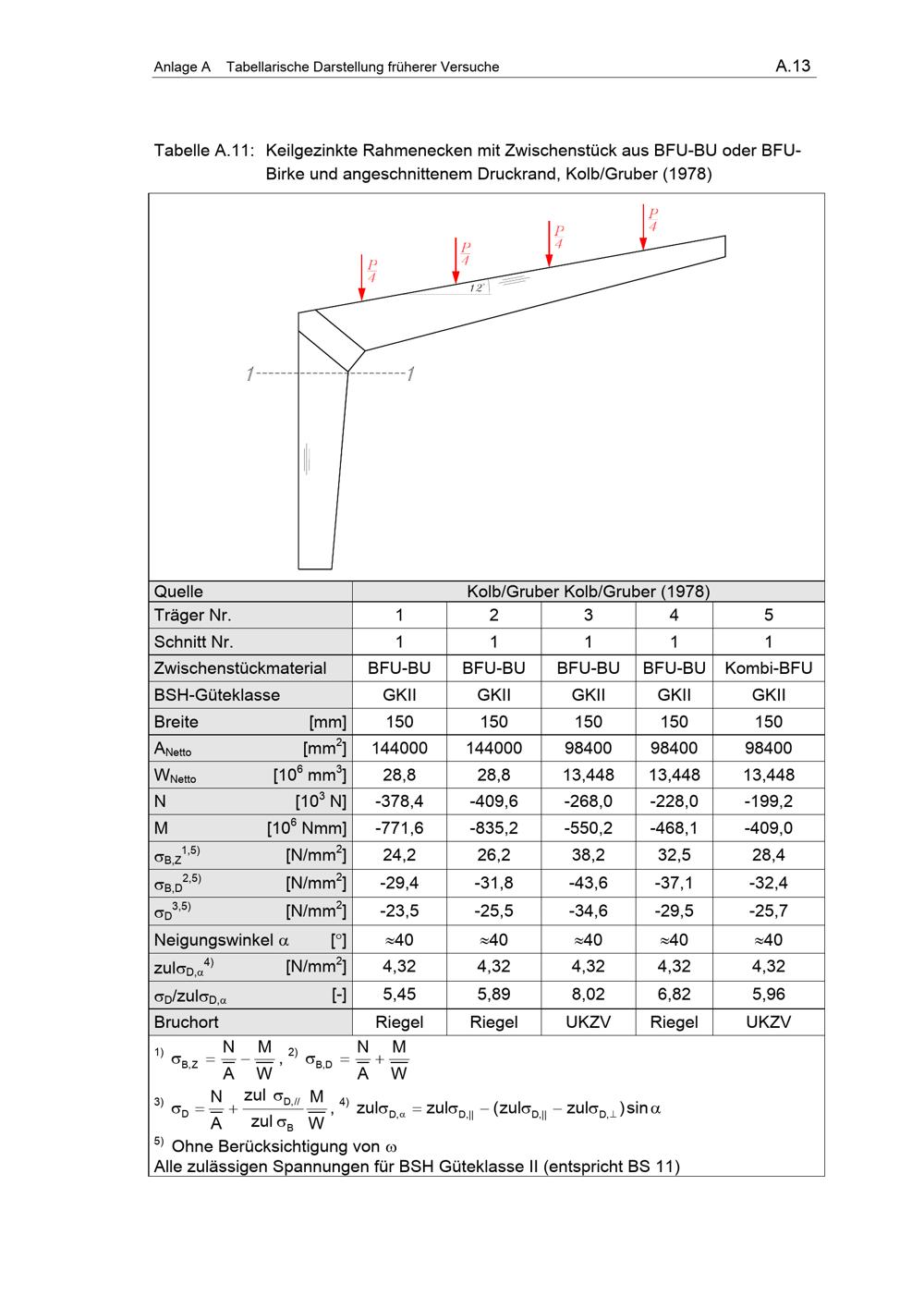 Tabelle A.11:Keilgezinkte Rahmenecken mit Zwische