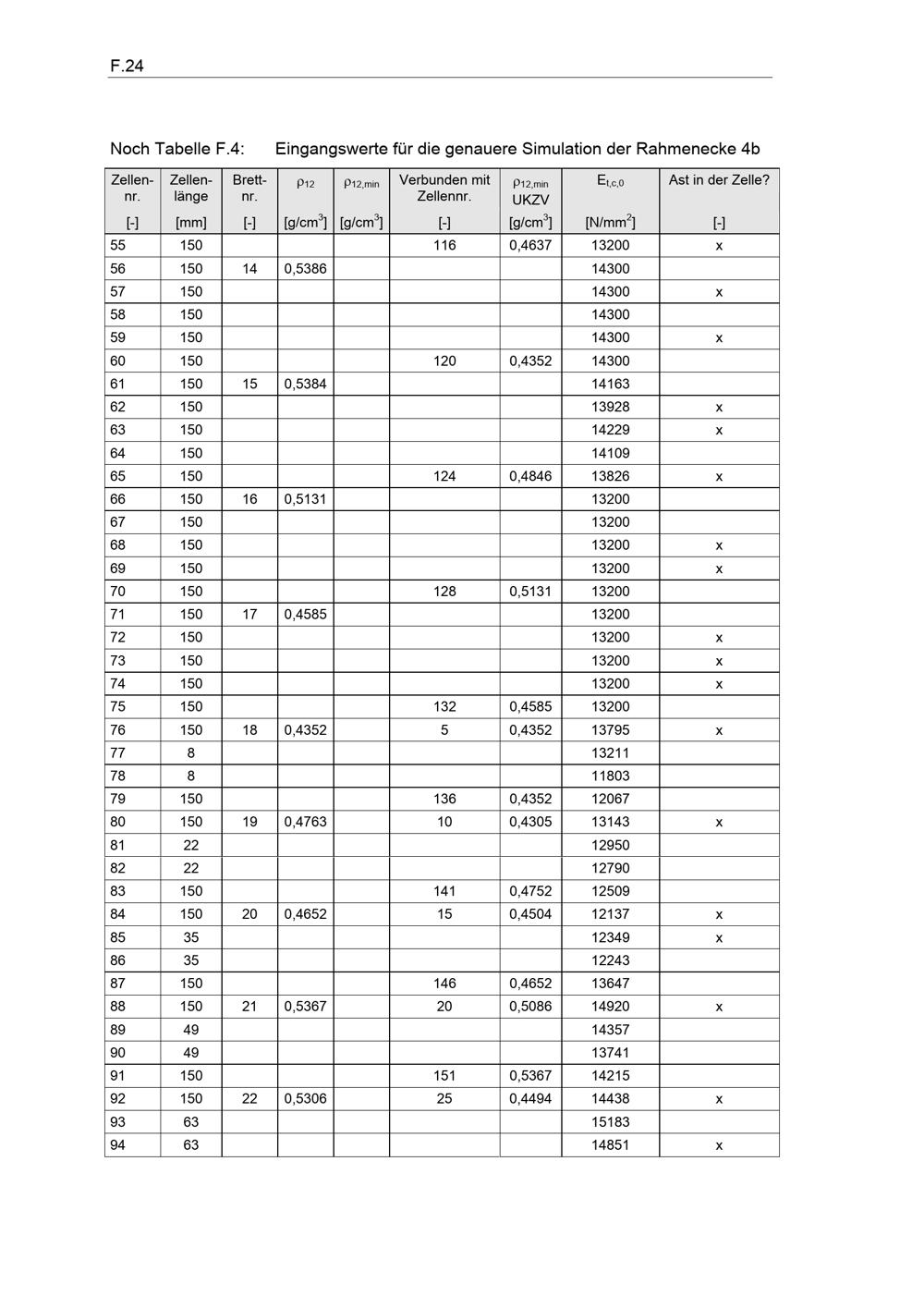 Noch Tabelle F.4:Eingangswerte für die genauere