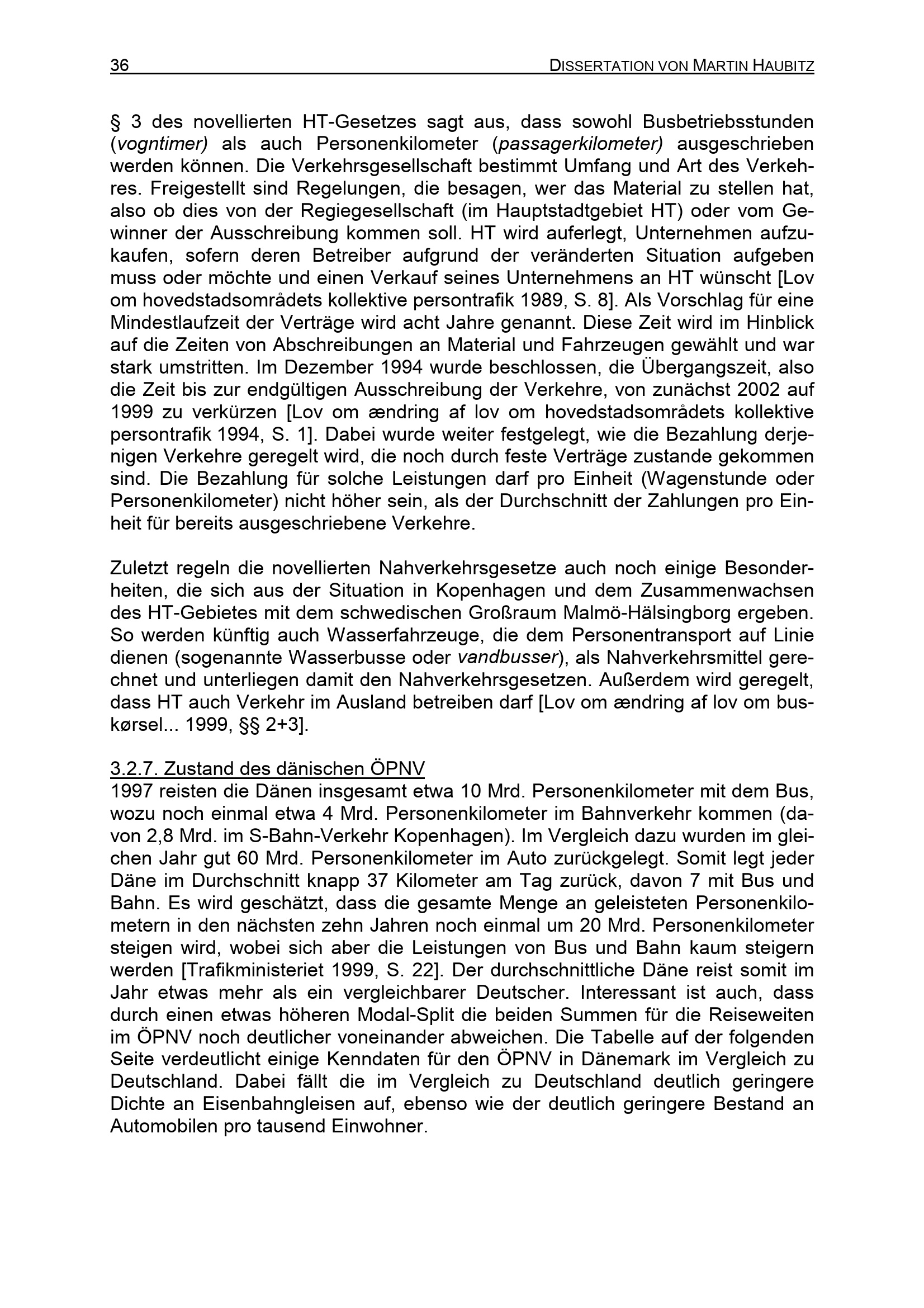 Das "Dänische Modell" des Wettbewerbs im Nahverkehr als Vorbild für die Organisation des ÖPNV in Deutschland / von Martin Haubitz