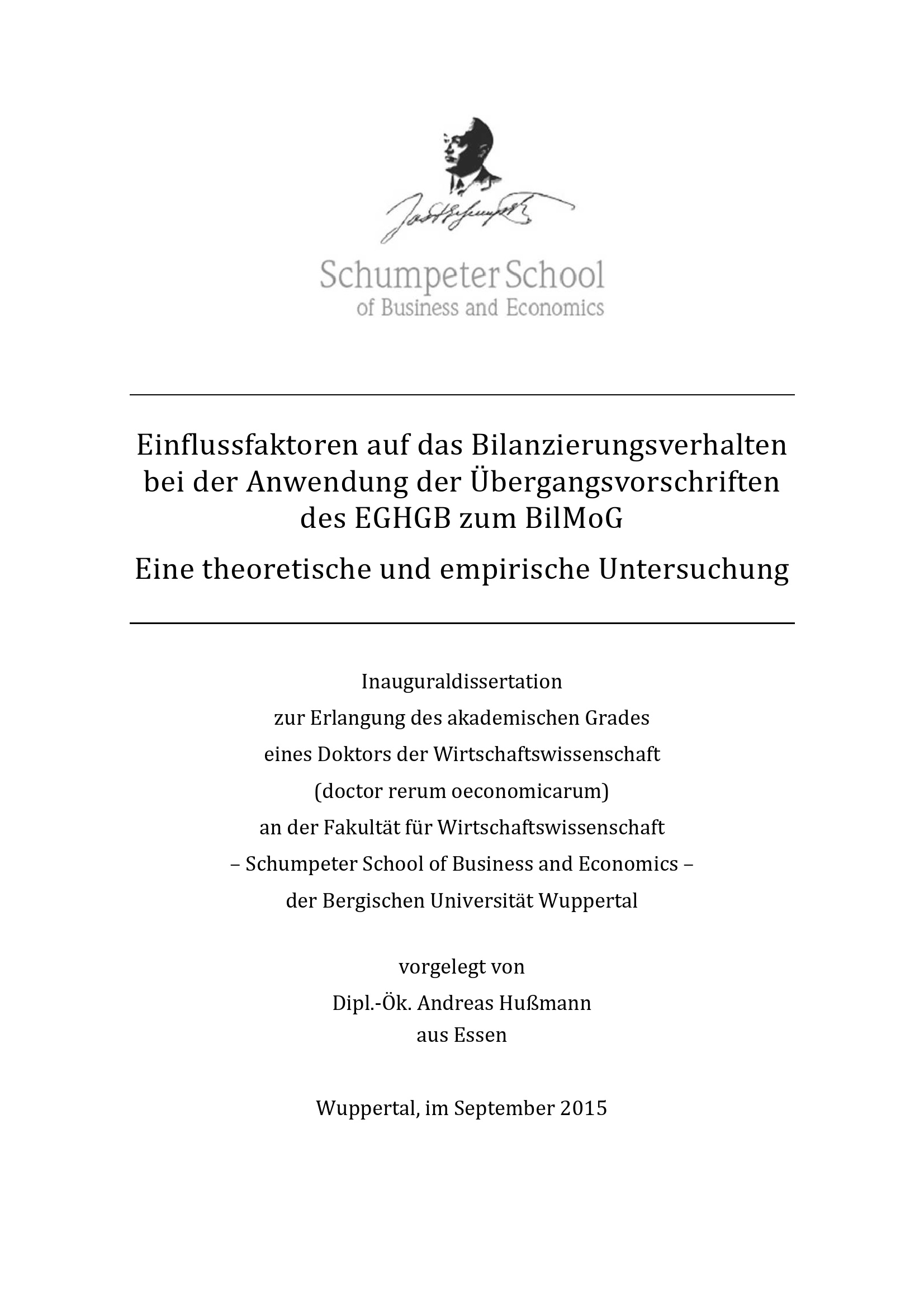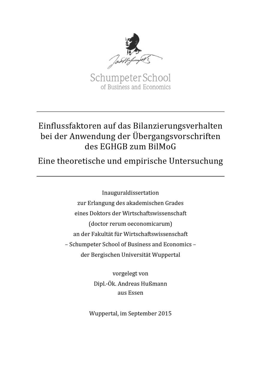 Einflussfaktoren auf das Bilanzierungsverhalten bei der Anwendung der Übergangsvorschriften des EGHGB zum BilMoG : eine theoretische und empirische Untersuchung / vorgelegt von Dipl.-Ök. Andreas Hußmann aus Essen