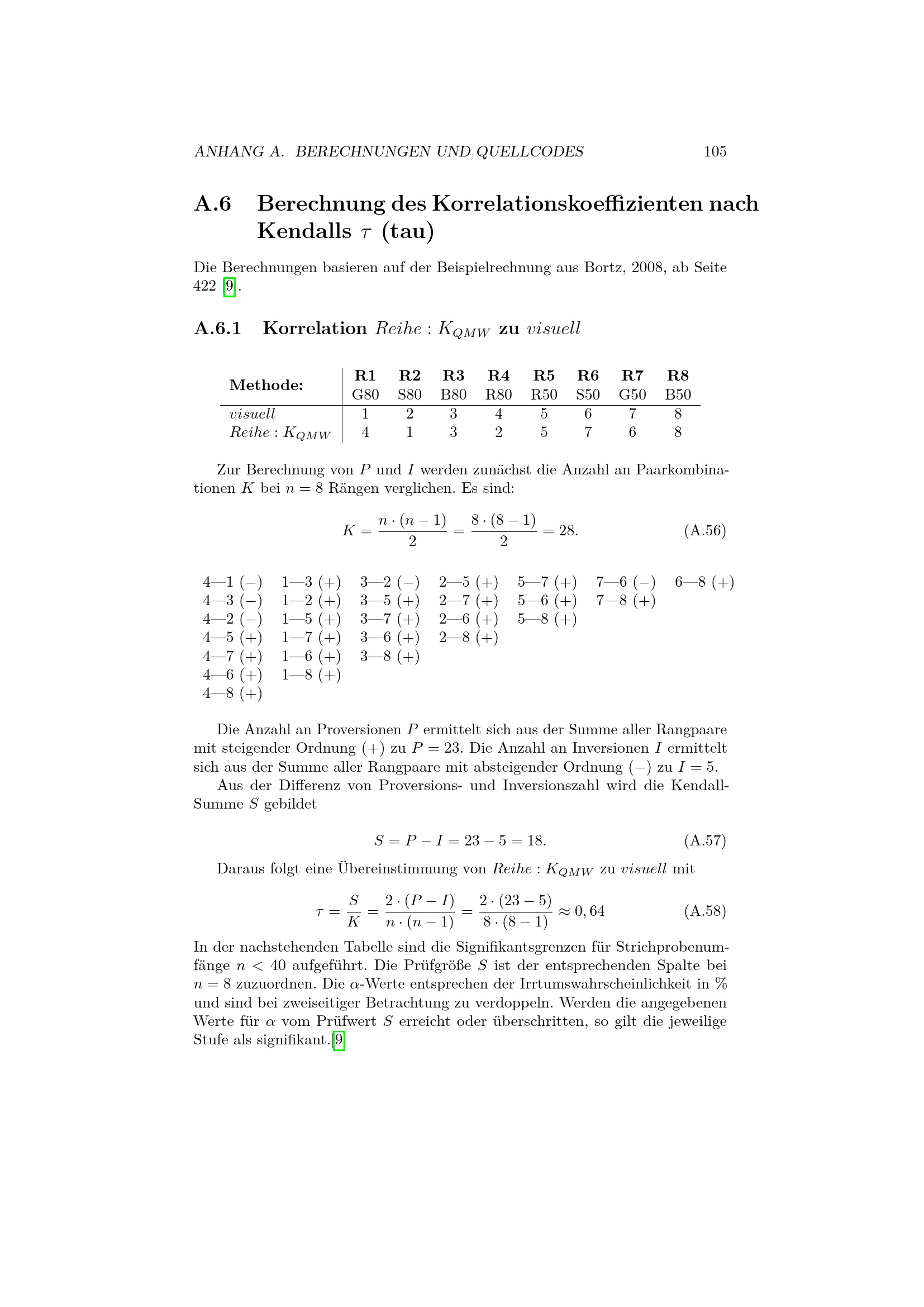 Berechnung des Korrelationskoeffizienten nach Kendall