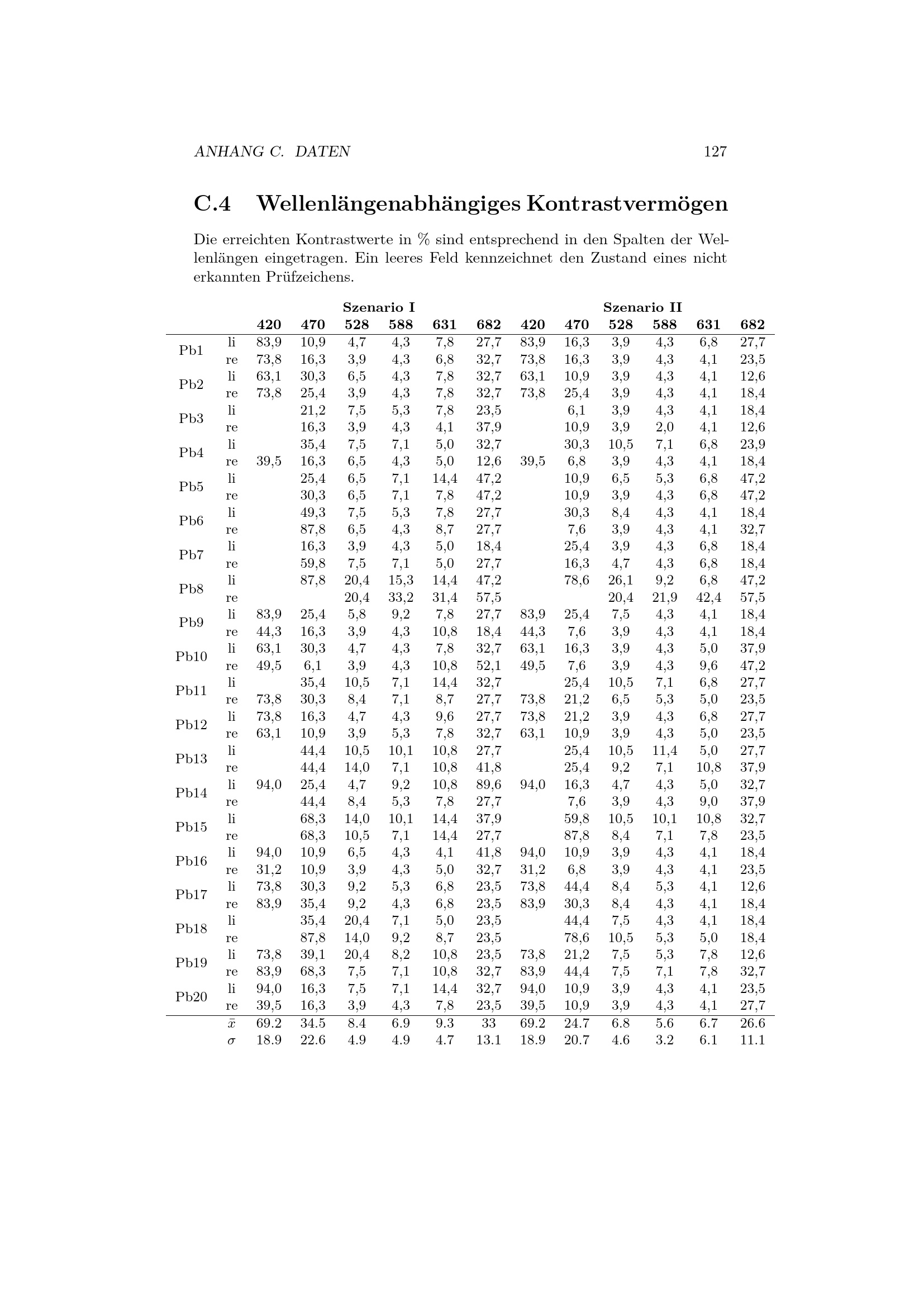 Wellenlängenabhängiges Kontrastvermögen