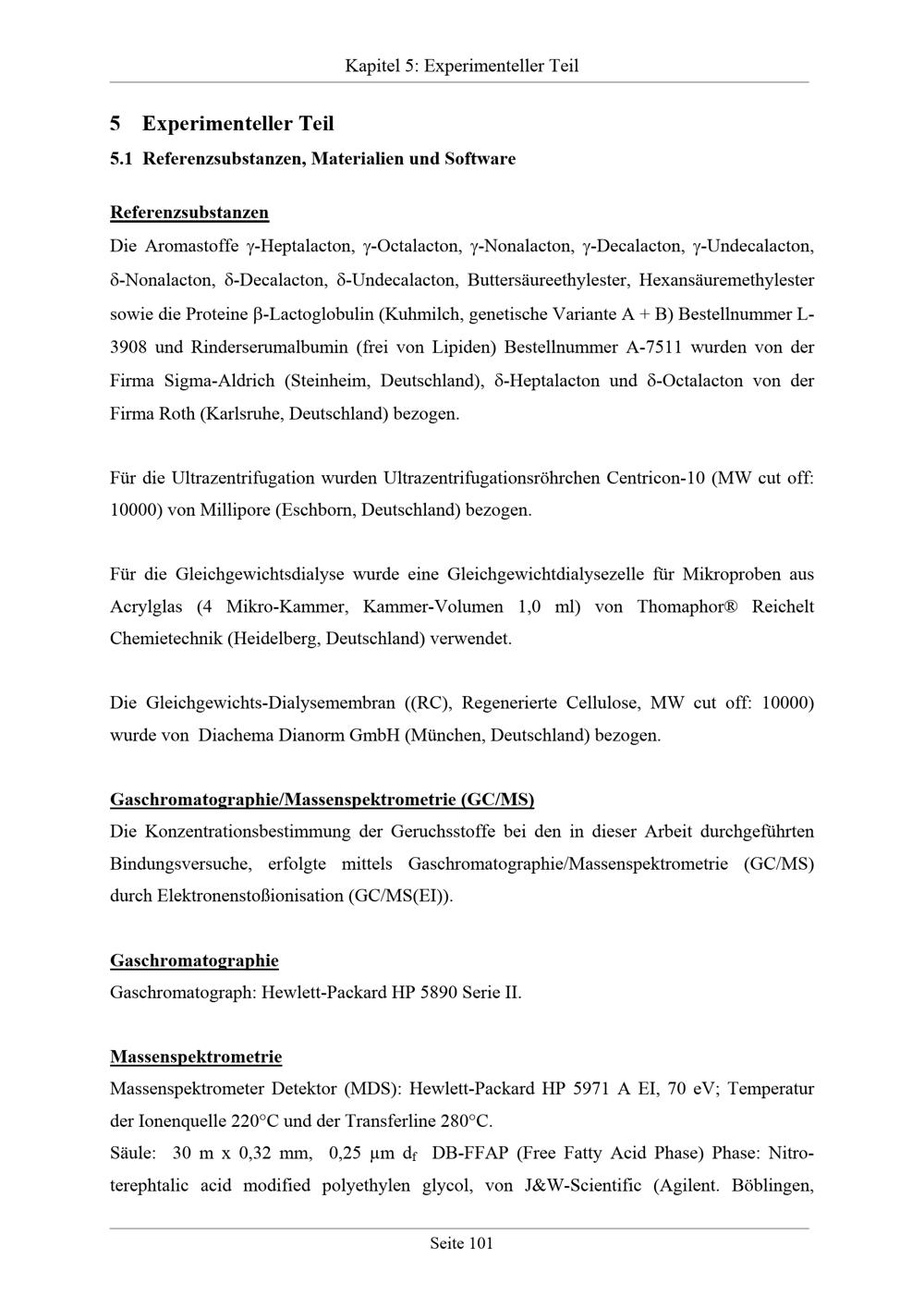 Bindungsverhalten von Geruchstoffen an makromolekulare Lebensmittelinhaltstoffe