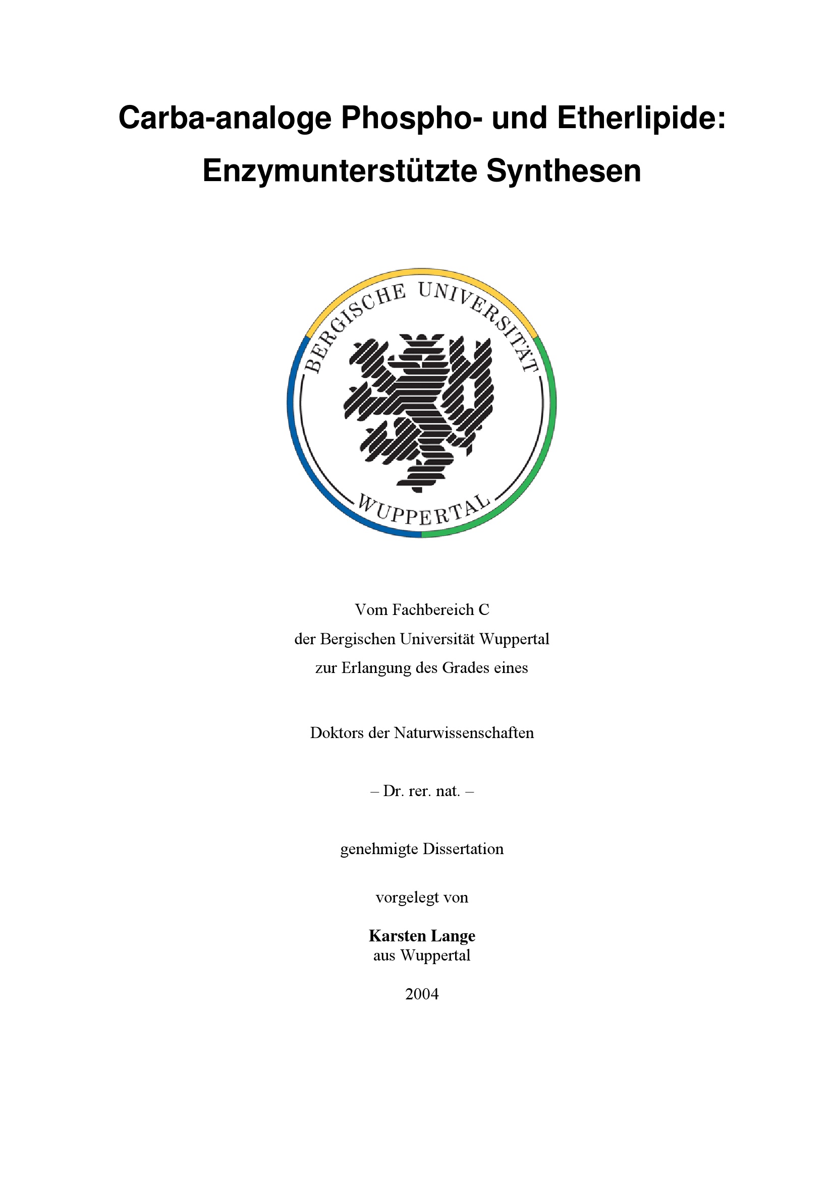Carba-analoge Phospho- und Etherlipide : enzymunterstützte Synthesen / vorgelegt von Karsten Lange