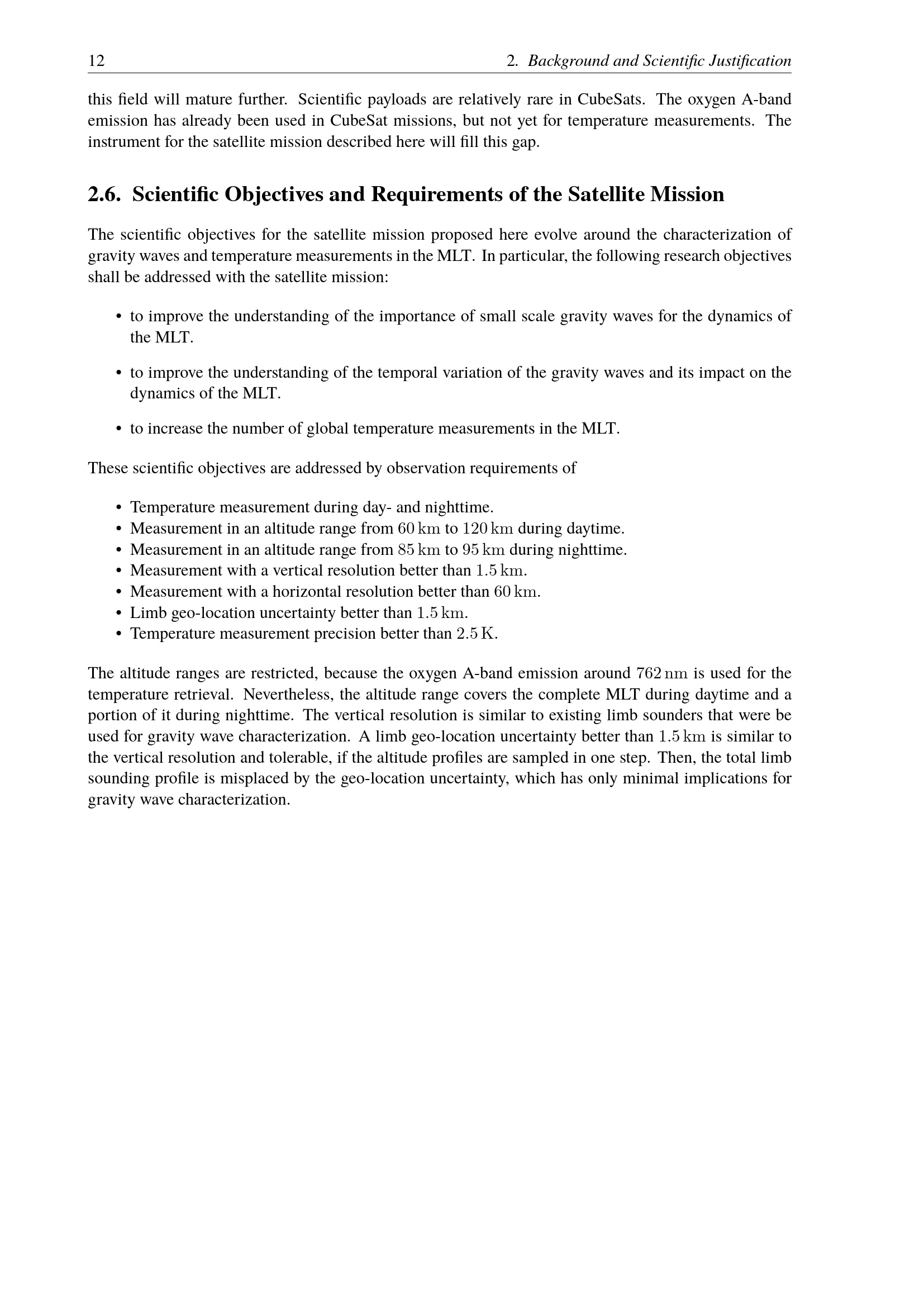Scientific Objectives and Requirements of the Satellite Mission