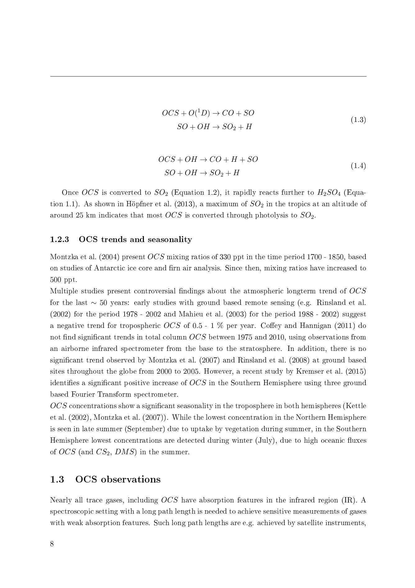 Carbonyl sulfide in the stratosphere : airborne instrument development and satellite based data analysis / Corinna Kloss