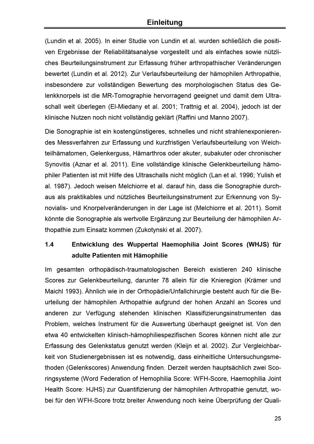 Entwicklung, Evaluation und Anwendung eines neuen Gelenkscores - Wuppertal Haemophilia Joint Score (WHJS) - zur Beurteilung der hämophilen Arthropathie bei adulten Patienten mit Hämophilie im Kontext von Alter und Therapieregime / vorgelegt von Dipl.-Sportwiss. Franziska Stäuber