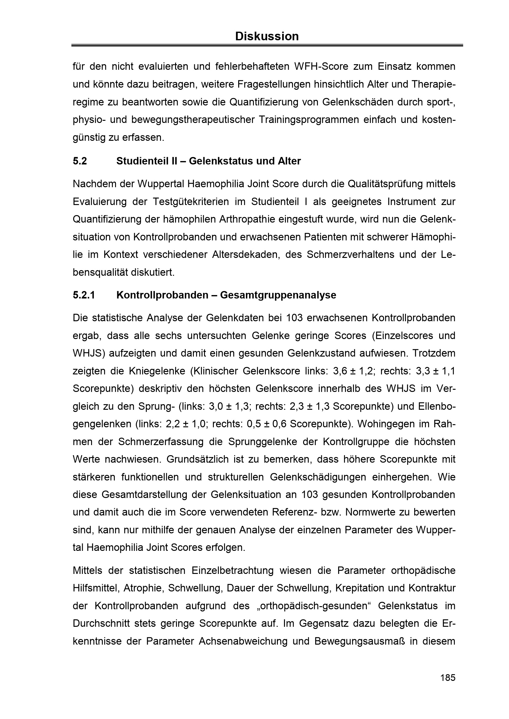 Entwicklung, Evaluation und Anwendung eines neuen Gelenkscores - Wuppertal Haemophilia Joint Score (WHJS) - zur Beurteilung der hämophilen Arthropathie bei adulten Patienten mit Hämophilie im Kontext von Alter und Therapieregime / vorgelegt von Dipl.-Sportwiss. Franziska Stäuber