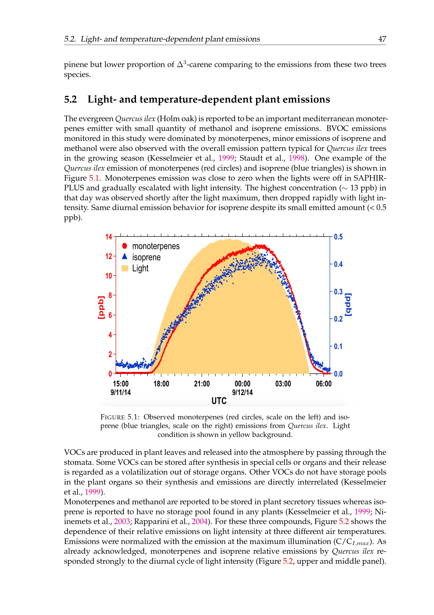 Light- and temperature-dependent plant emissions