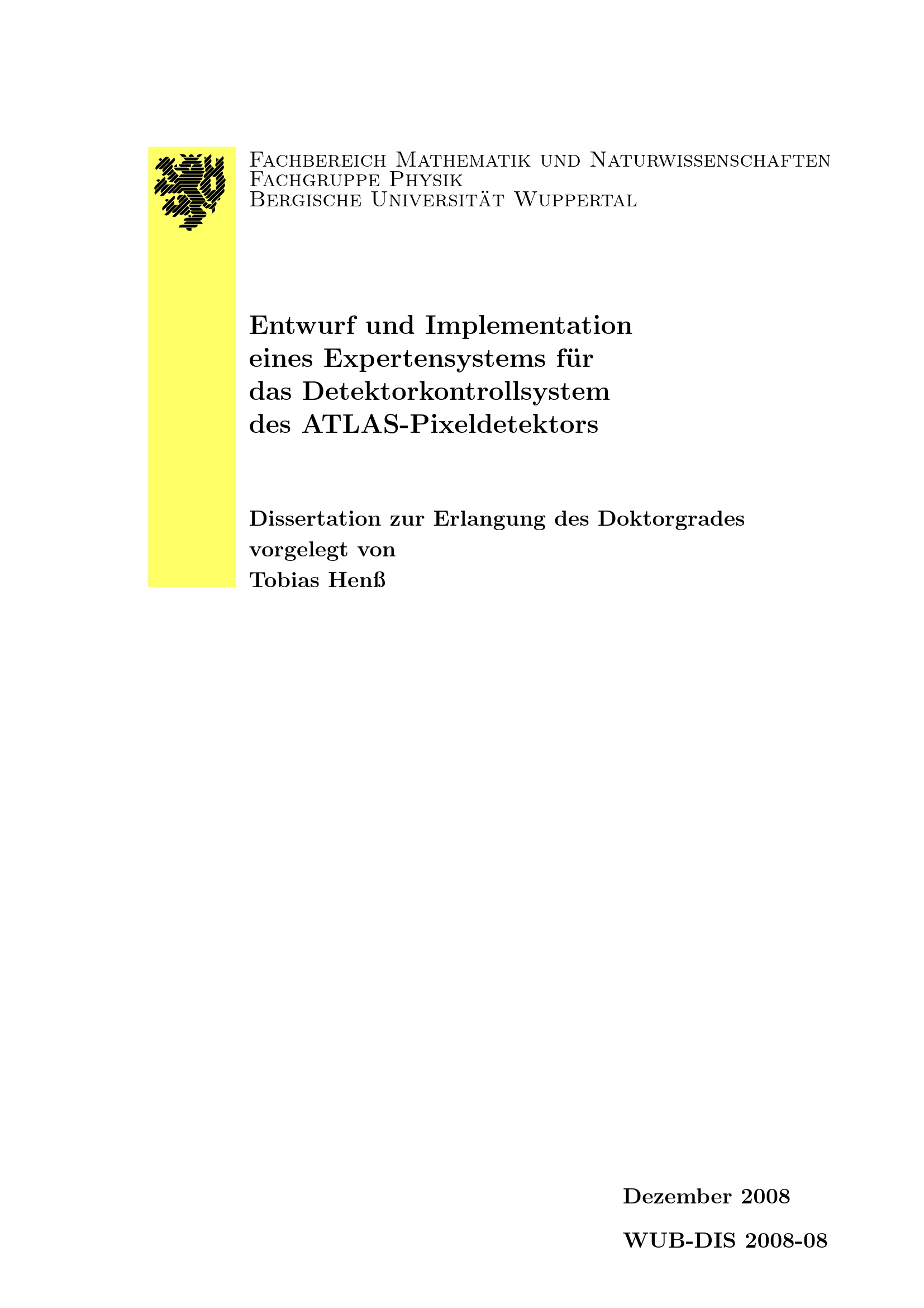 Entwurf und Implementation eines Expertensystems für das Detektorkontrollsystem des ATLAS-Pixeldetektors / vorgelegt von Tobias Henß