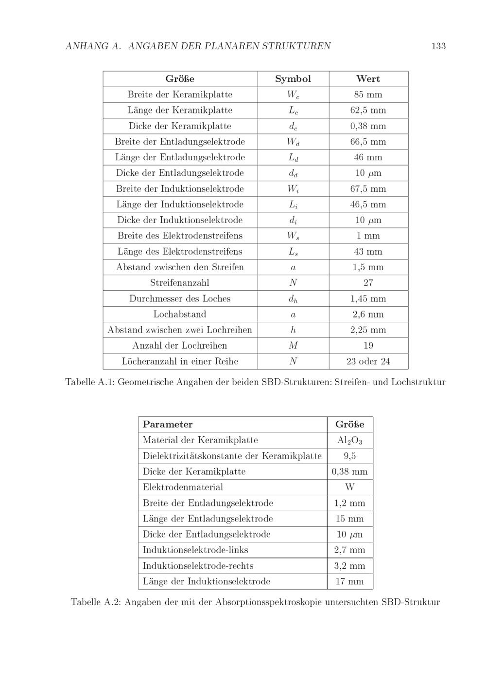 Angaben der planaren Strukturen