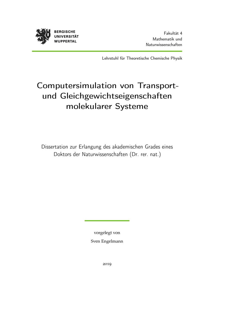 Computersimulation von Transport- und Gleichgewichtseigenschaften molekularer Systeme / vorgelegt von Sven Engelmann