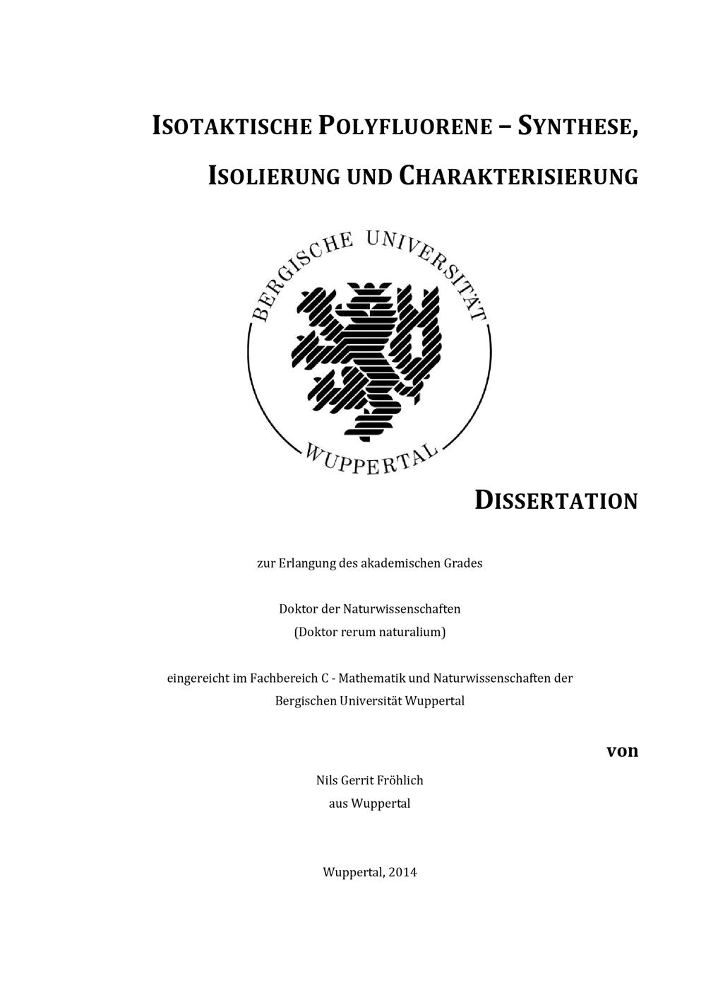 Isotaktische Polyfluorene : Synthese, Isolierung und Charakterisierung / von Nils Gerrit Fröhlich