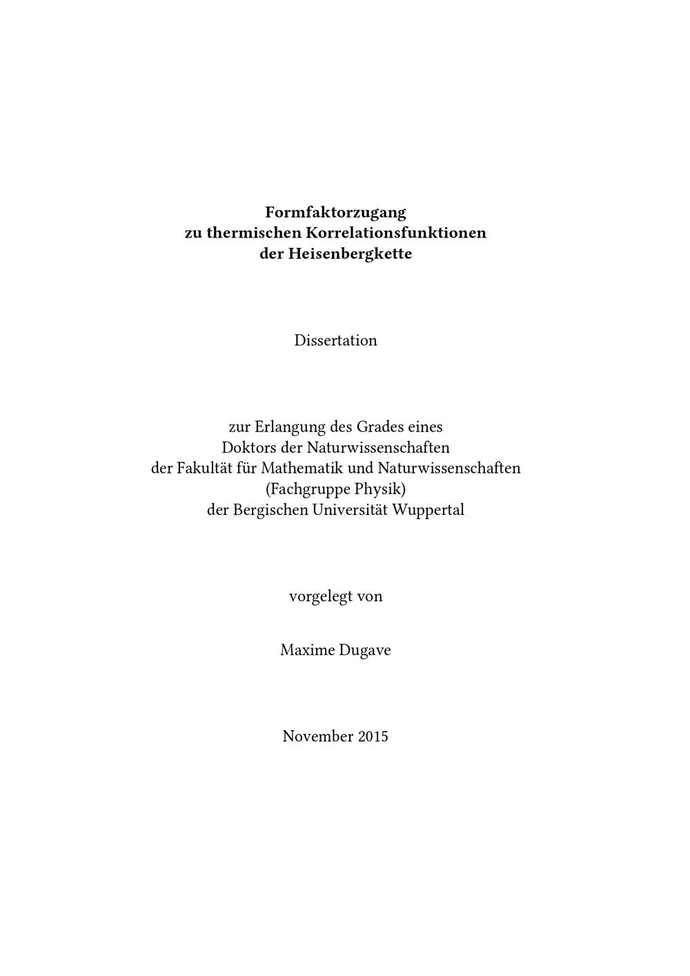Formfaktorzugang zu thermischen Korrelationsfunktionen der Heisenbergkette / vorgelegt von Maxime Dugave