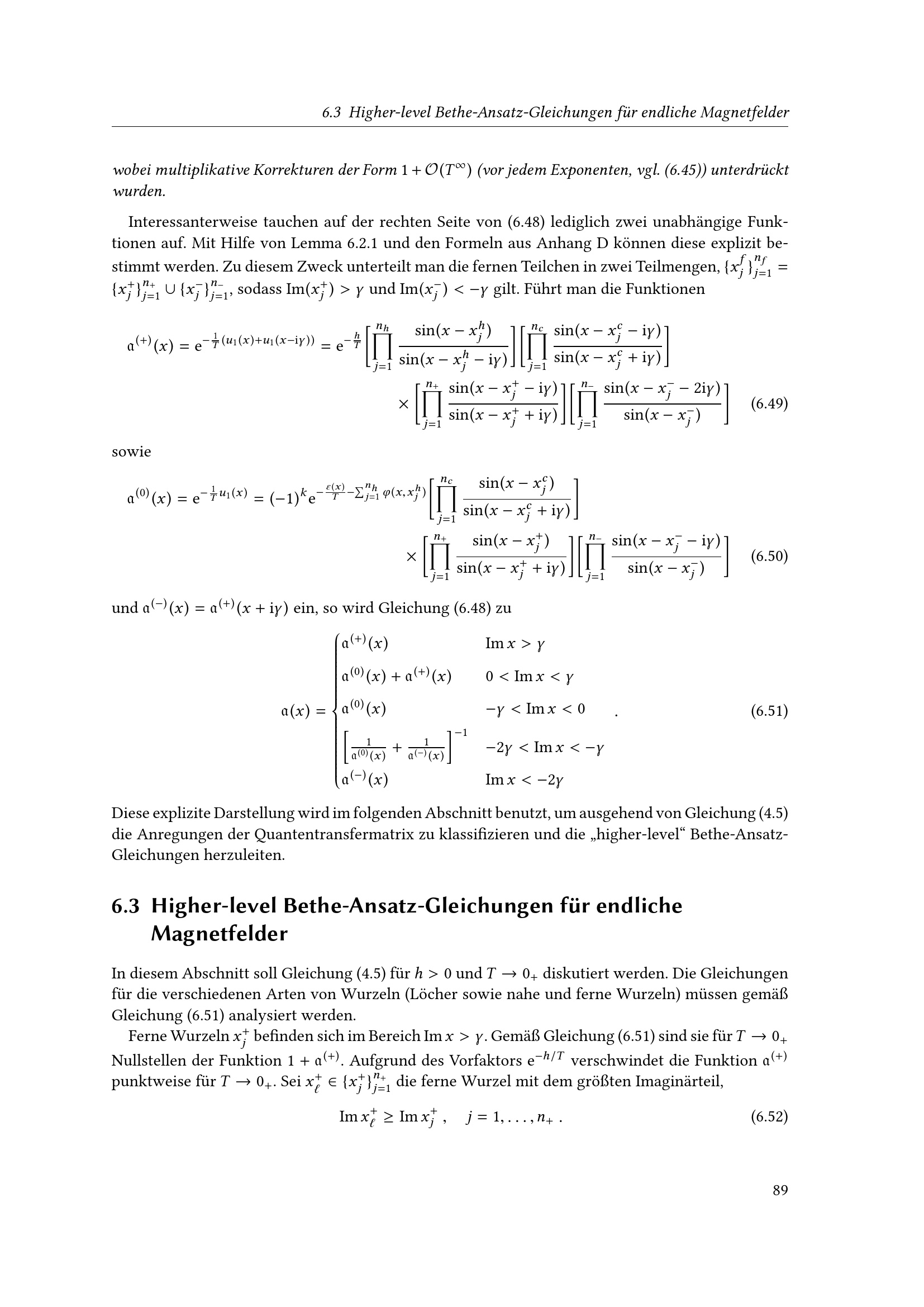 Higher-level Bethe-Ansatz-Gleichungen für endliche Magnetfelder