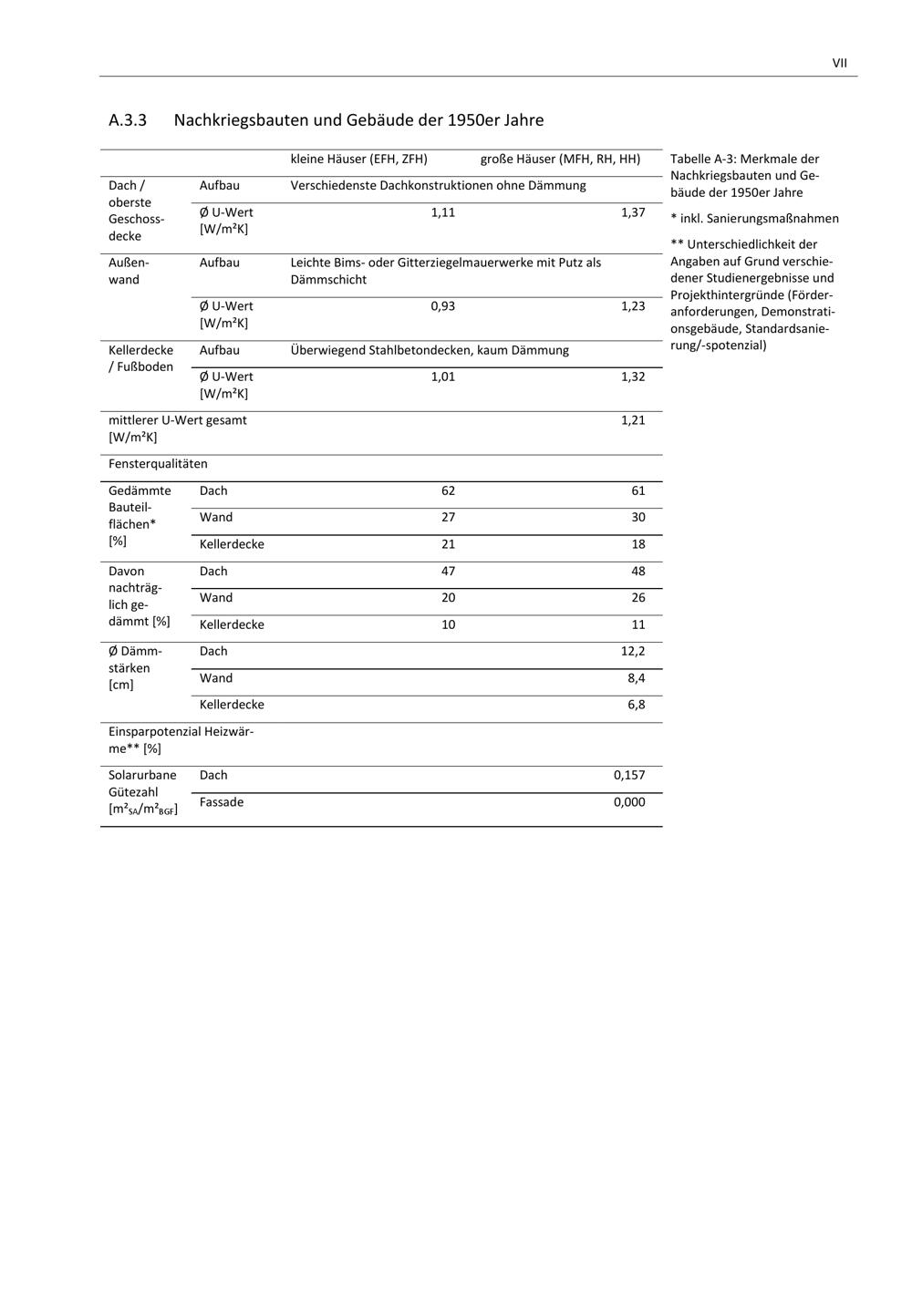 A.3 Merkmale deutscher (Wohn-)Gebäude unterteilt nach Gebäudealtersklassen