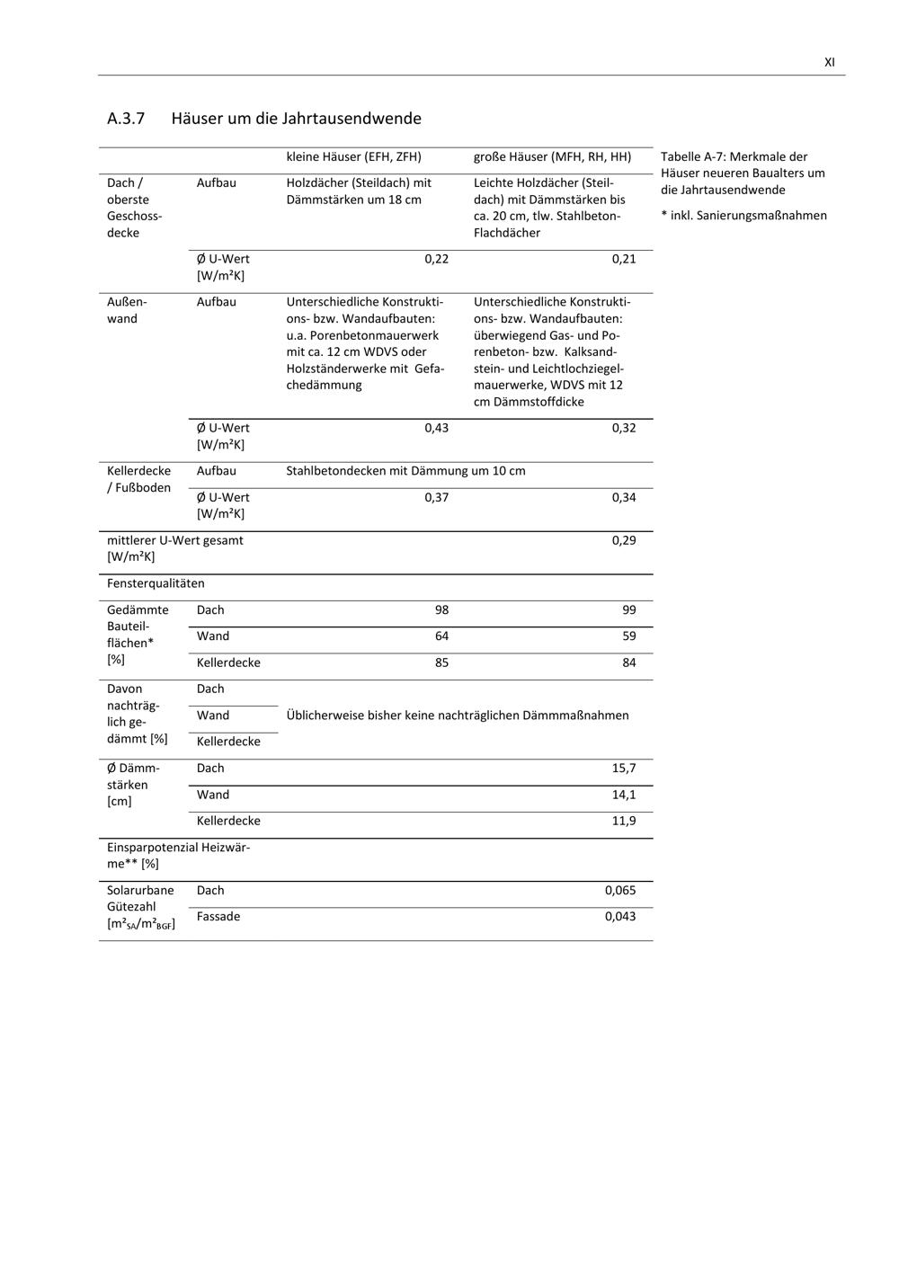 A.3 Merkmale deutscher (Wohn-)Gebäude unterteilt nach Gebäudealtersklassen