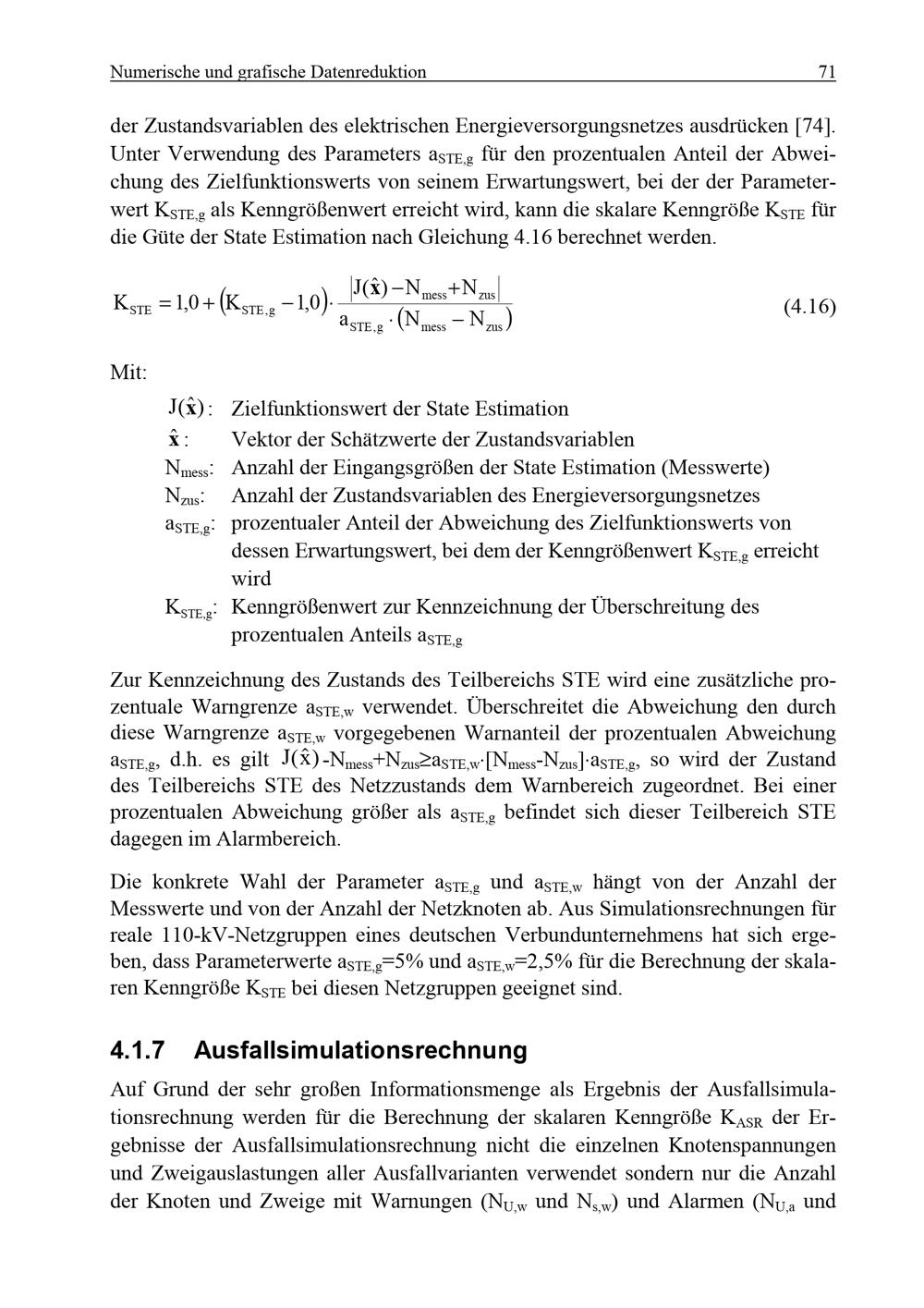 Numerische Datenreduktion für Teilbereiche des Netzzustands