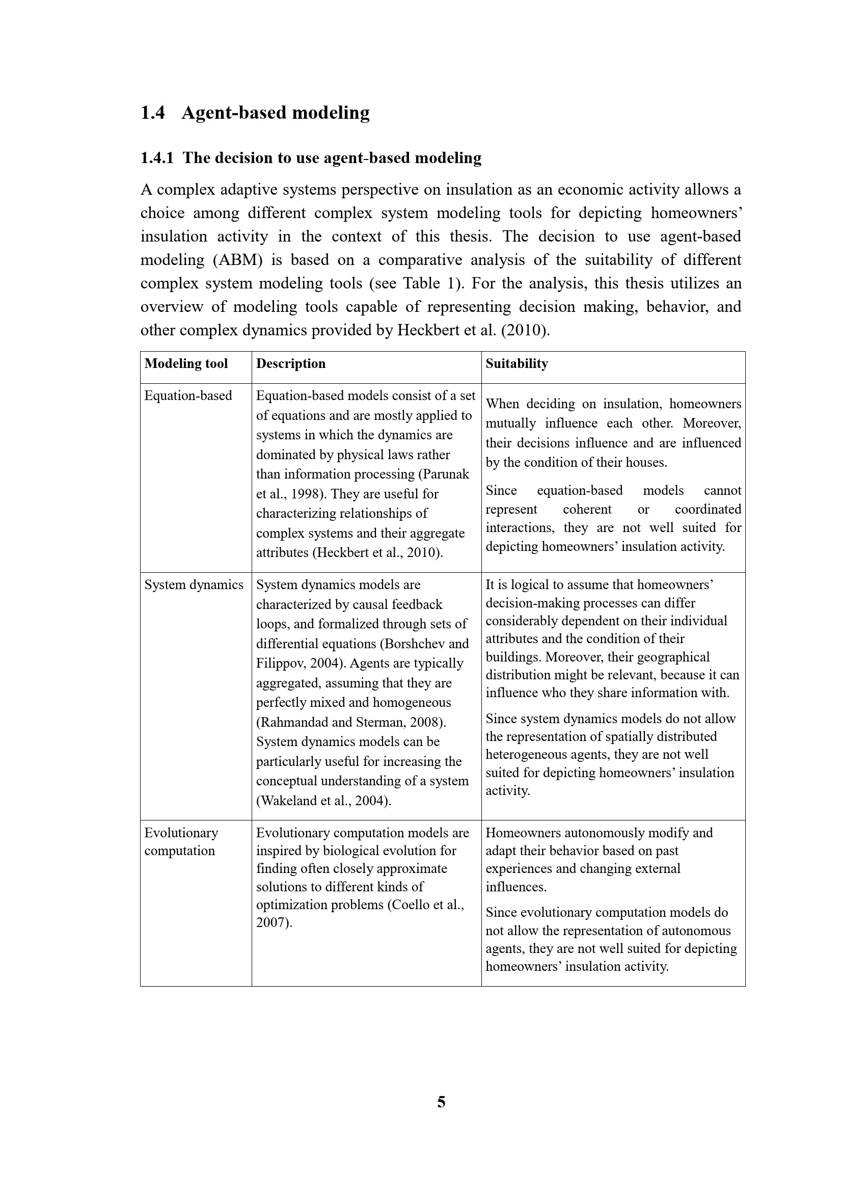1.4.1 The decision to use agent-based modeling