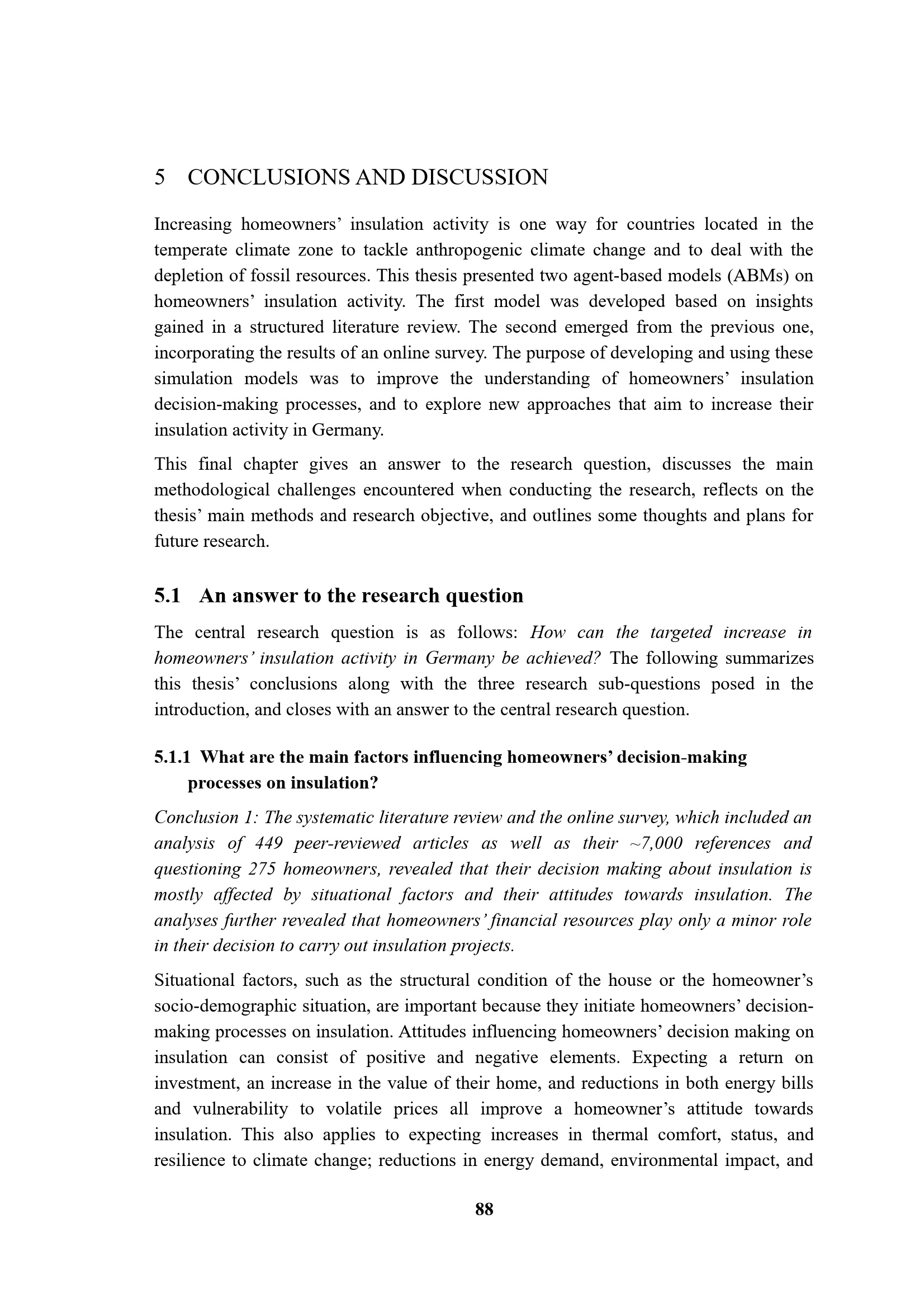 5.1 An answer to the research question