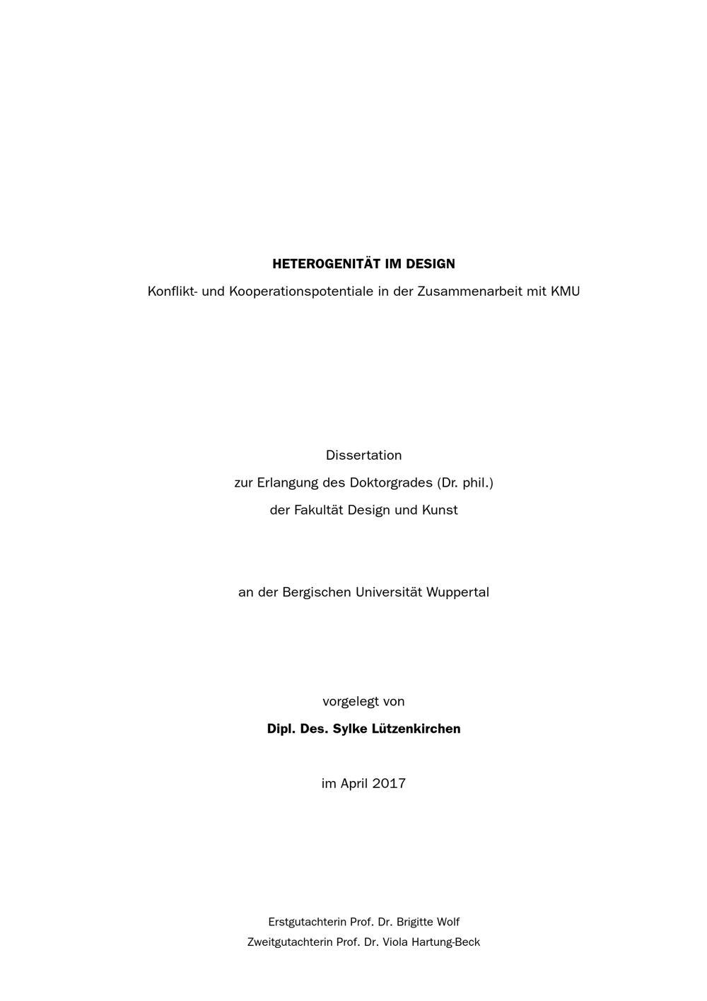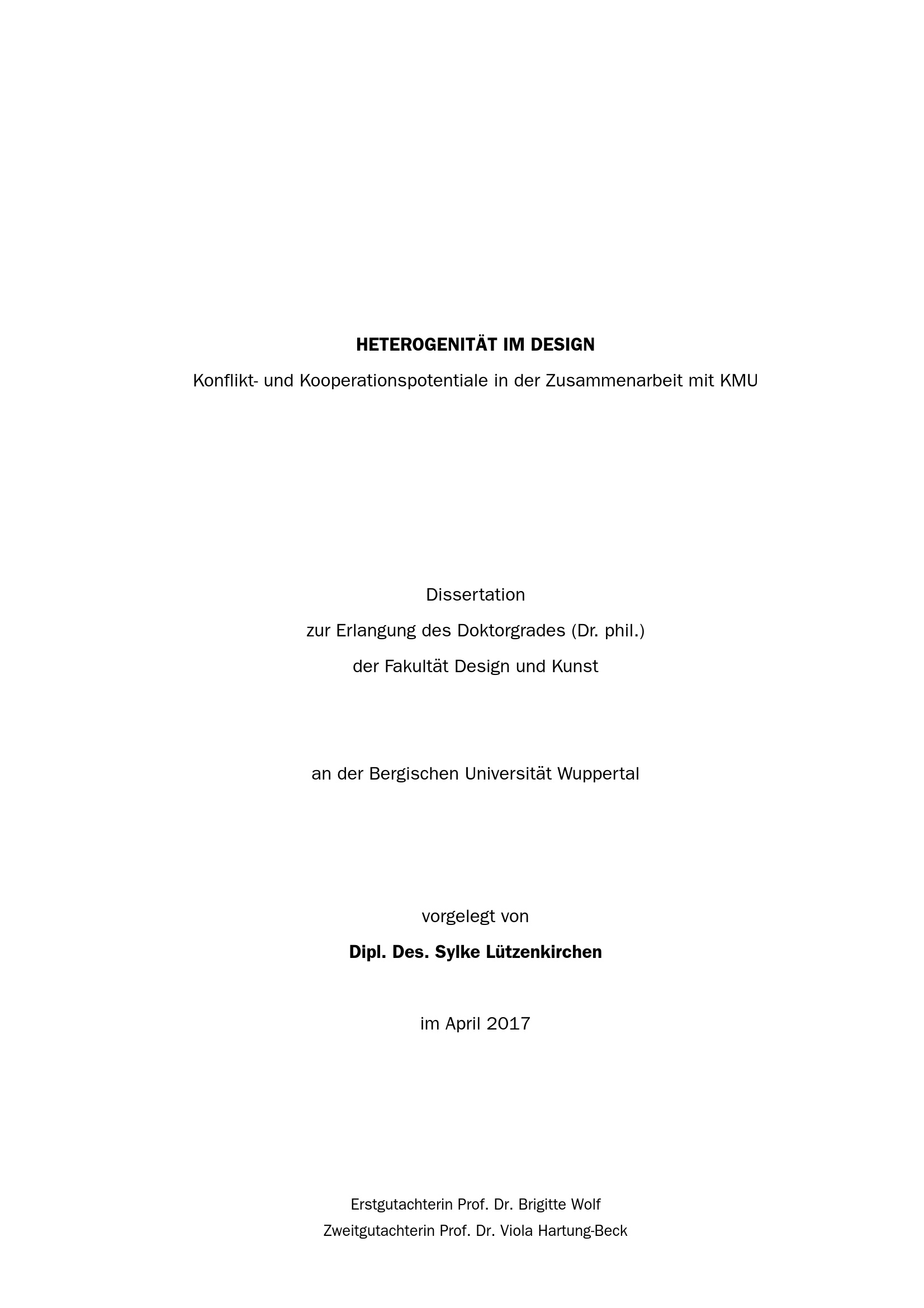 Heterogenität im Design : Konflikt- und Kooperationspotentiale in der Zusammenarbeit mit KMU / vorgelegt von Dipl. Des. Sylke Lützenkirchen