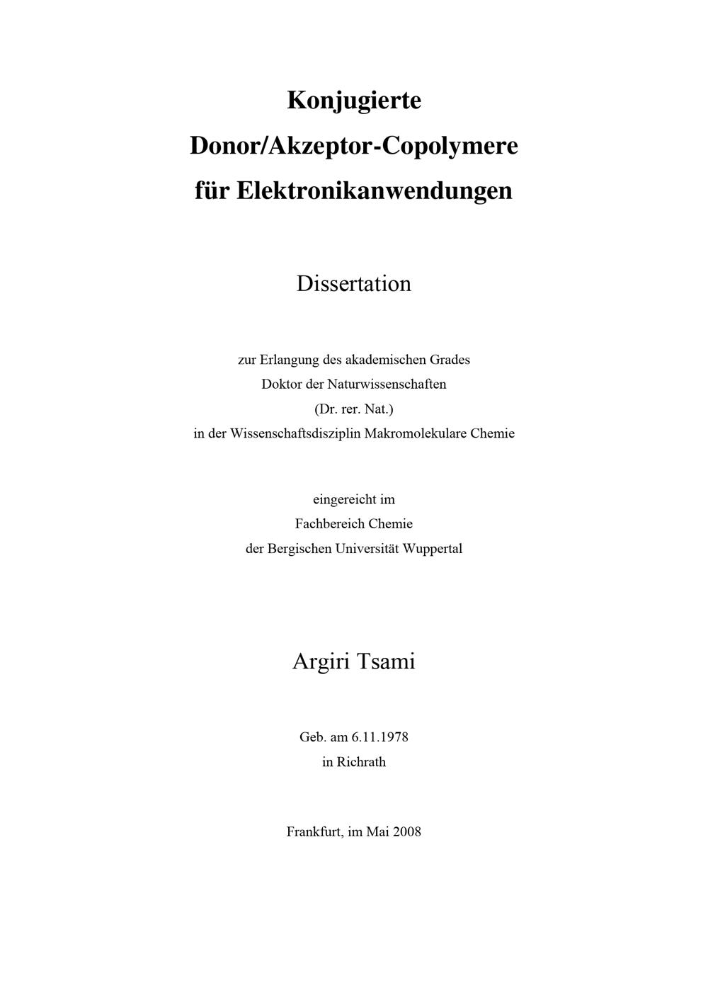 Konjugierte Donor-, Akzeptor-Copolymere für Elektronikanwendungen / Argiri Tsami