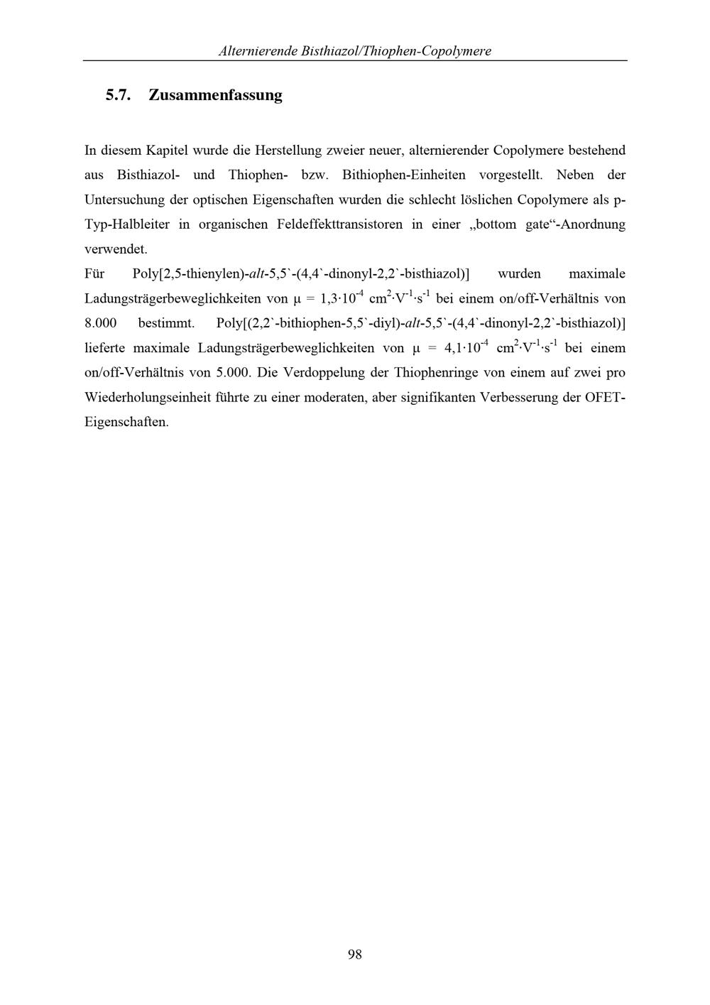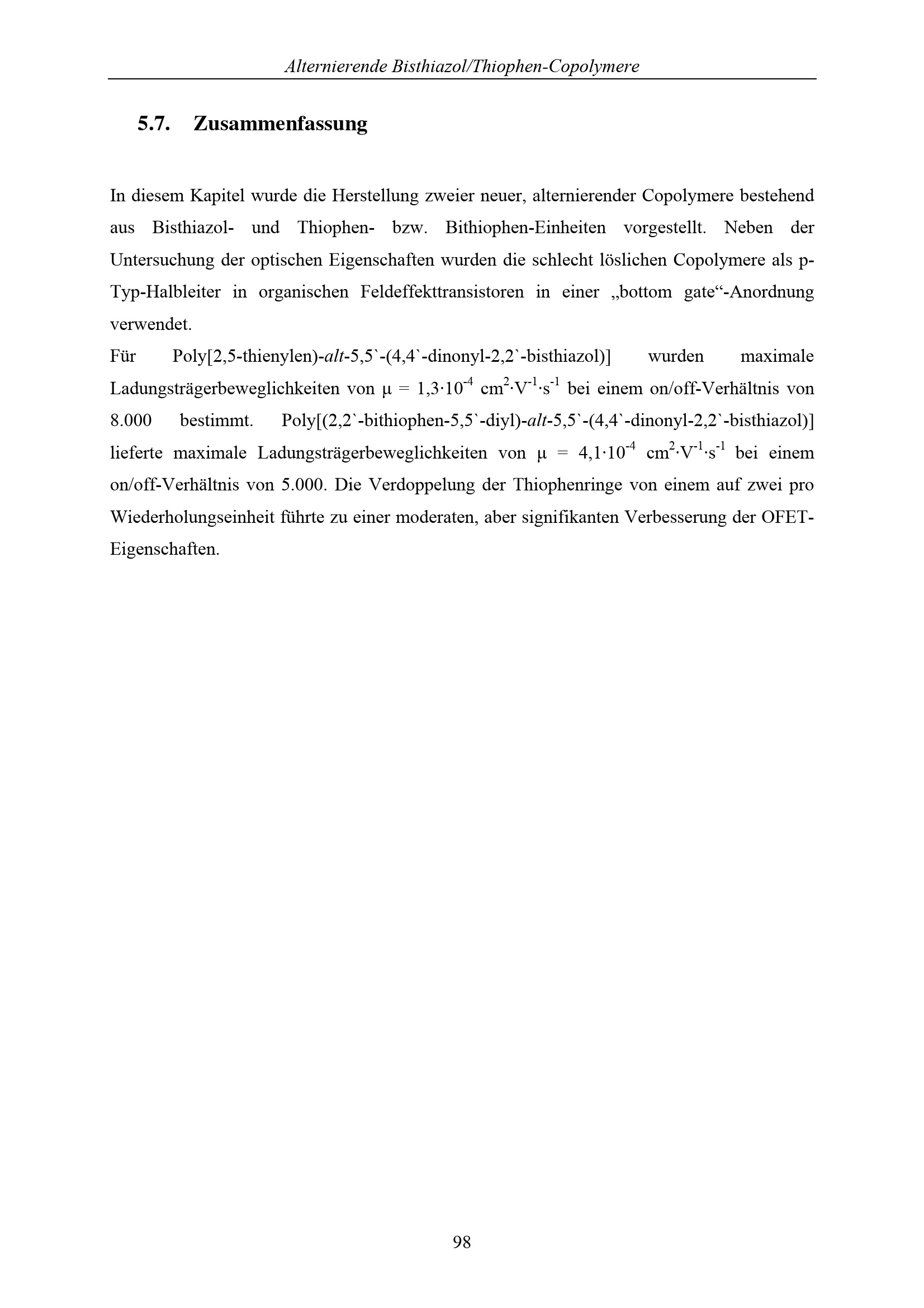 5. Alternierende Bisthiazol/Thiophen-Copolymere