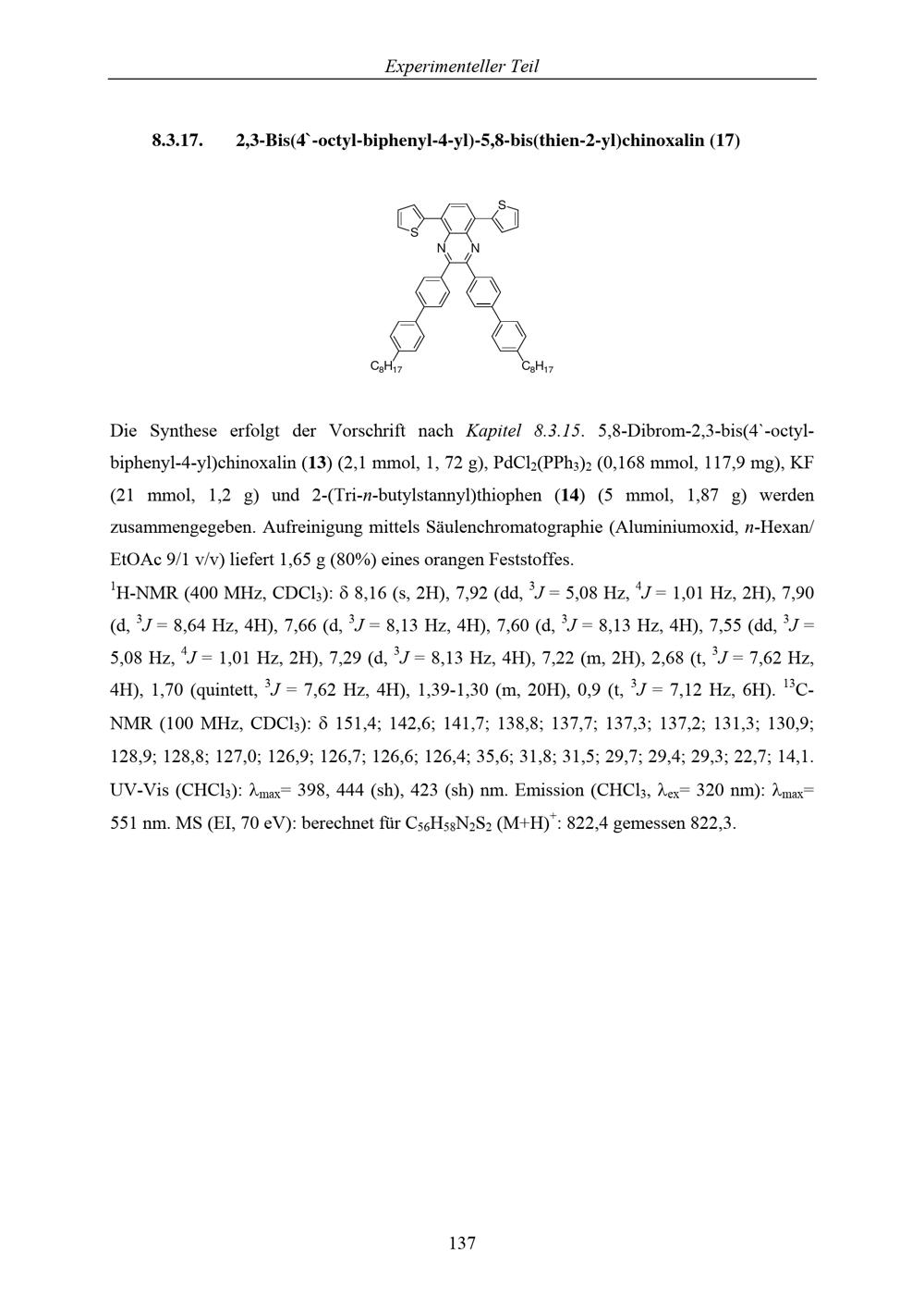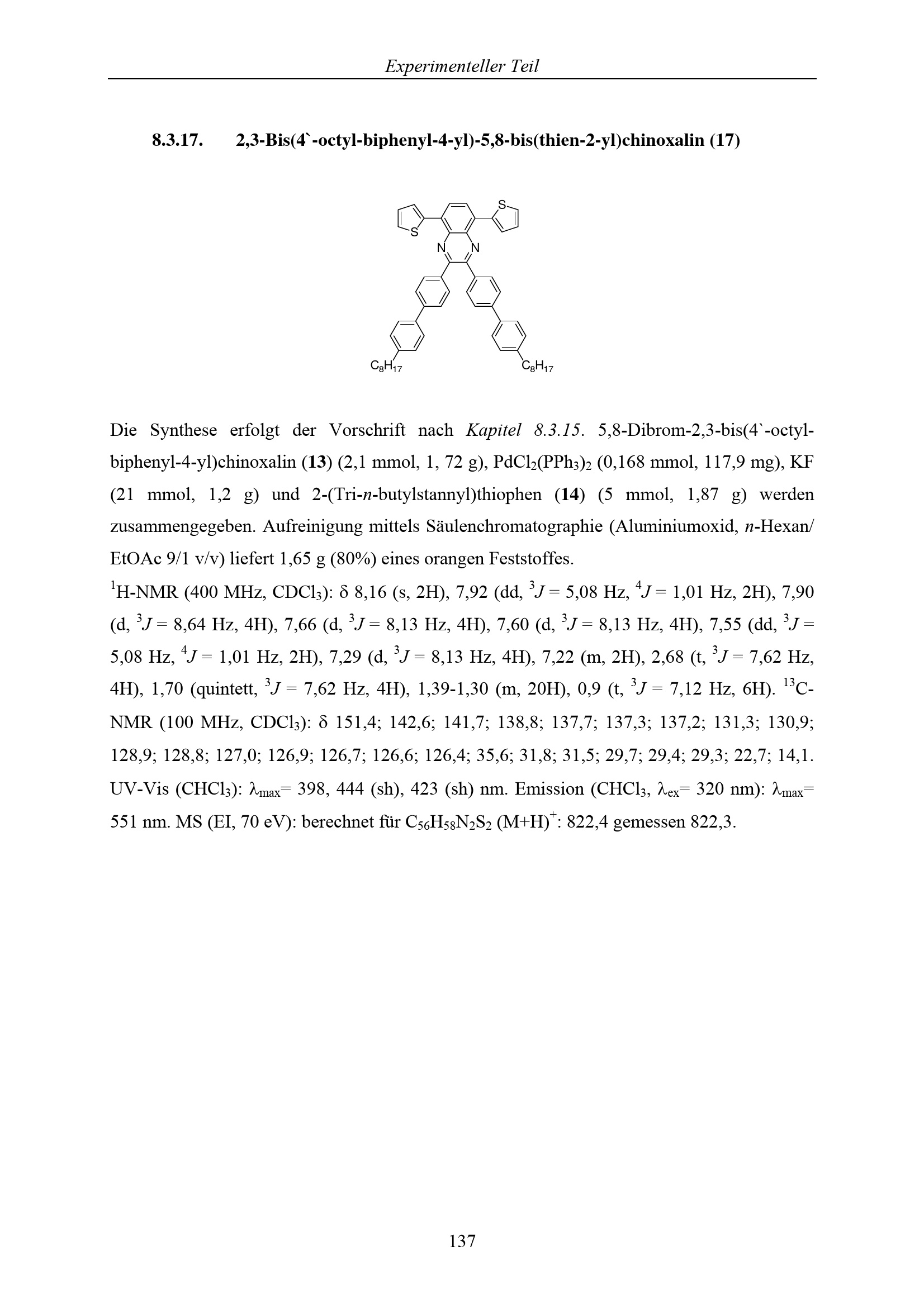 8.3.17. 2,3-Bis(4`-octyl-biphenyl-4-yl)-5,8-bis(thien-2-yl)chinoxalin (17)