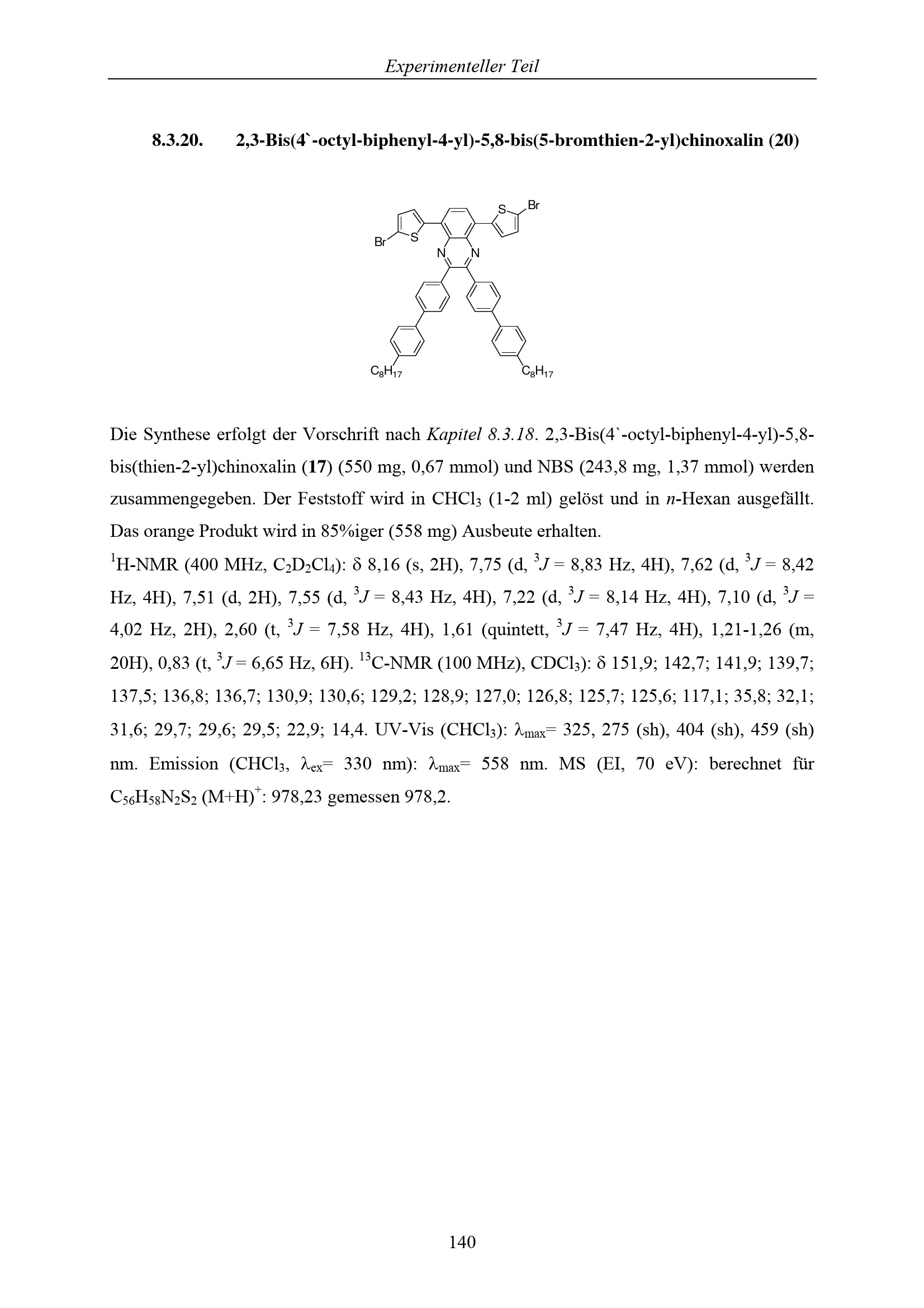8.3.20. 2,3-Bis(4`-octyl-biphenyl-4-yl)-5,8-bis(5-bromthien-2-yl)chinoxalin (20)