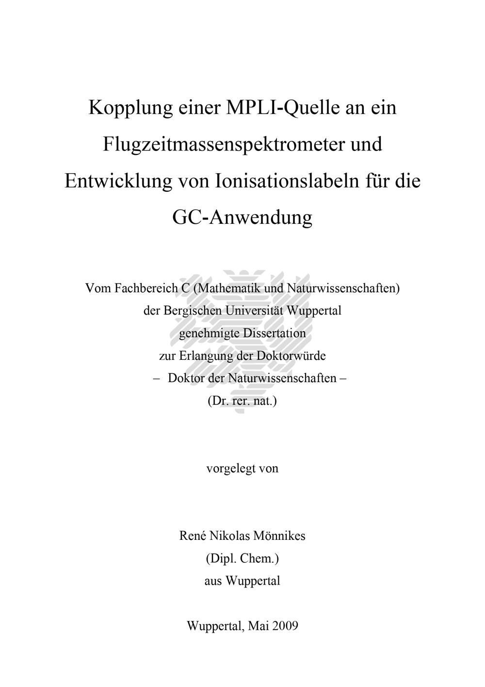 Kopplung einer MPLI-Quelle an ein Flugzeitmassenspektrometer und Entwicklung von Ionisationslabeln für die GC-Anwendung / vorgelegt von René Nikolas Mönnikes