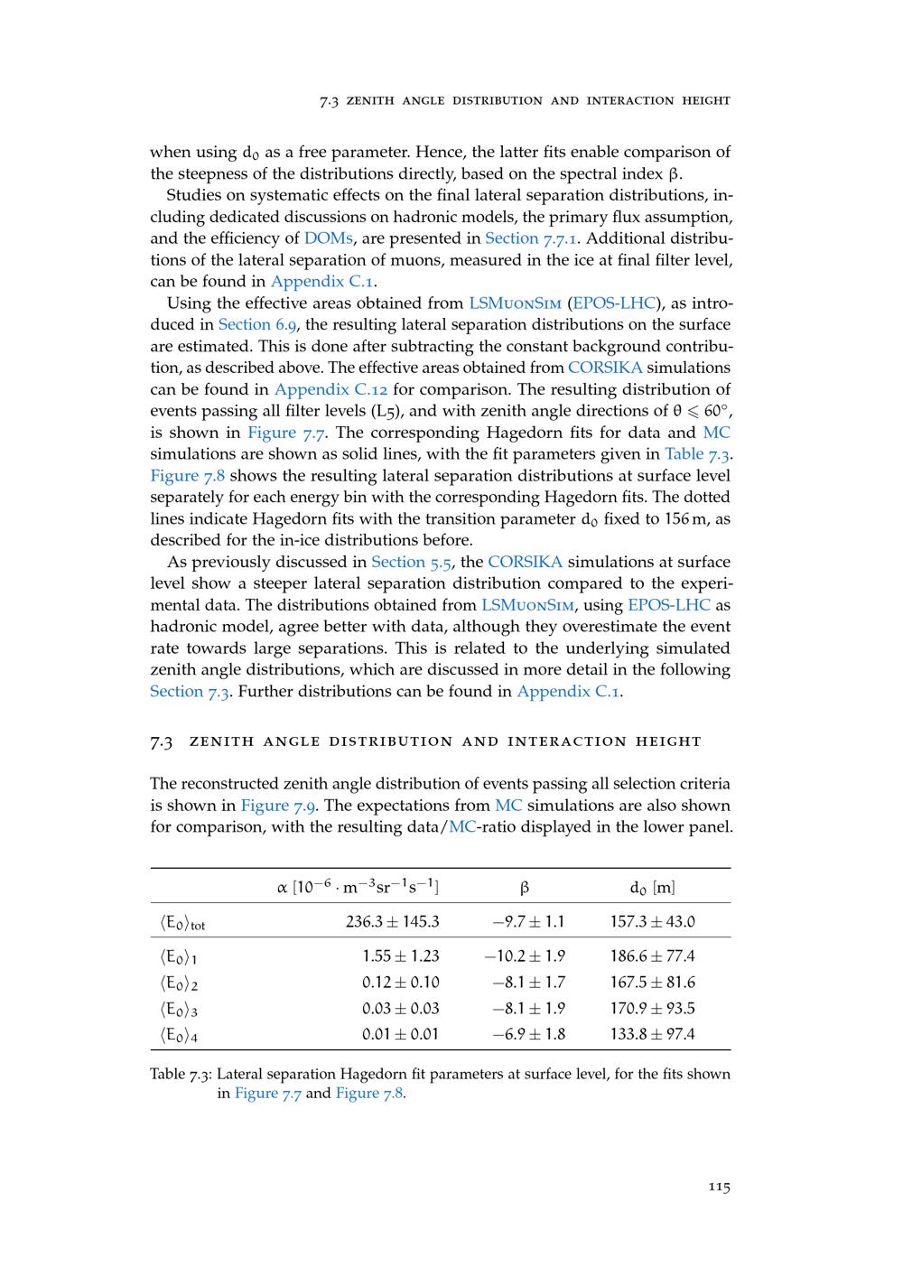 7.3 Zenith Angle Distribution and Interaction Height