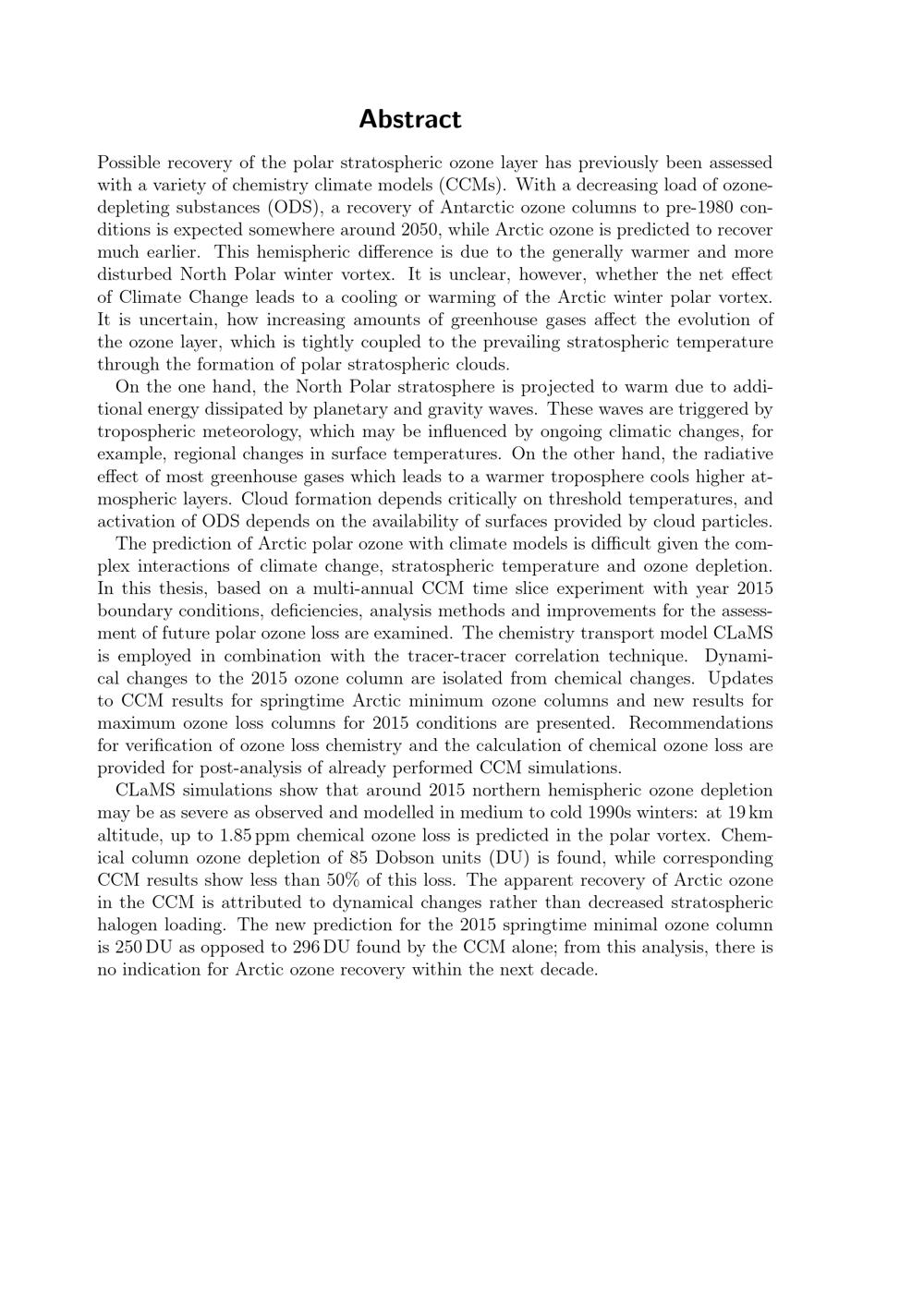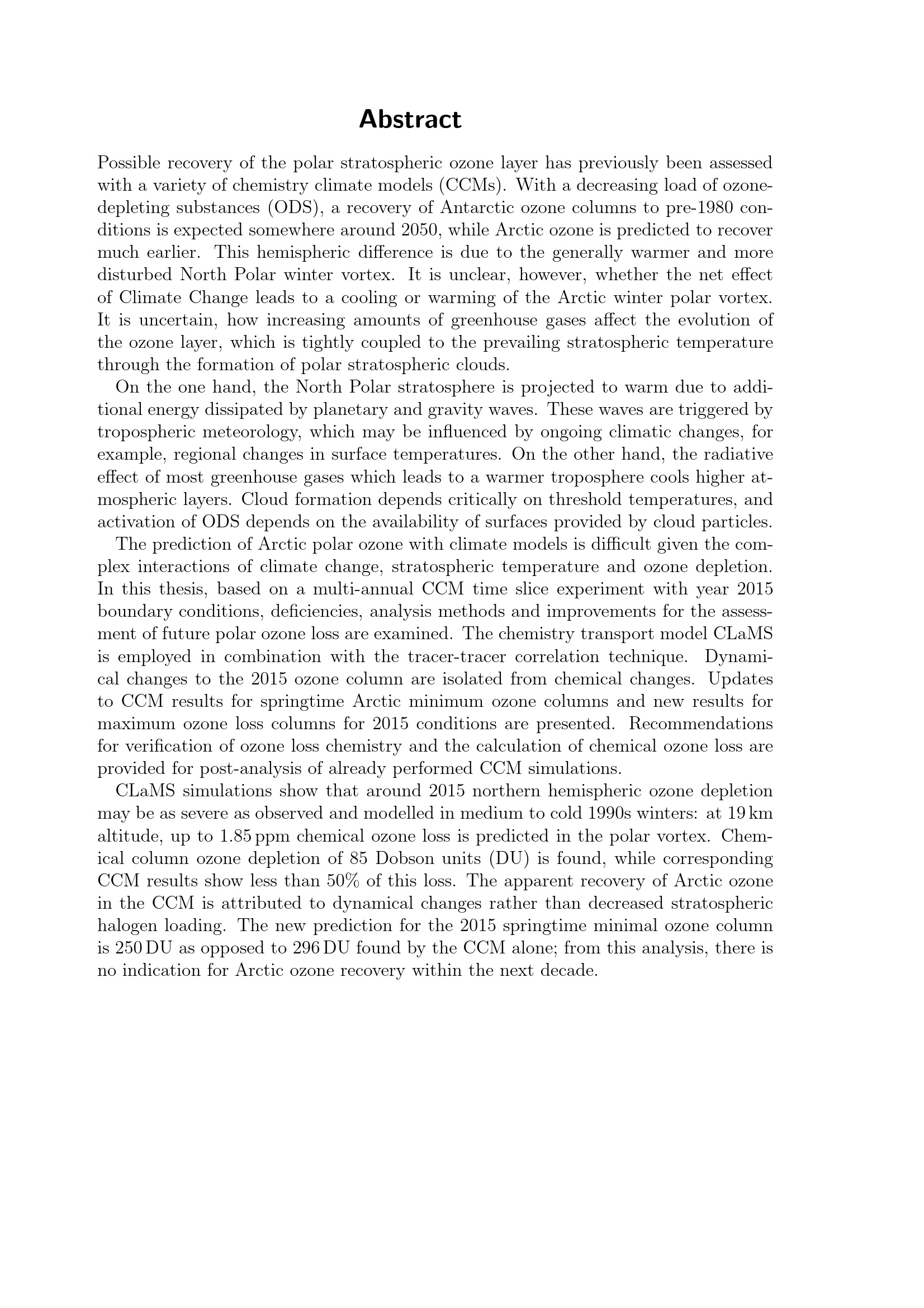 Future polar ozone : predictions of Arctic ozone recovery in a changing climate / vorgelegt von Carsten Lemmen