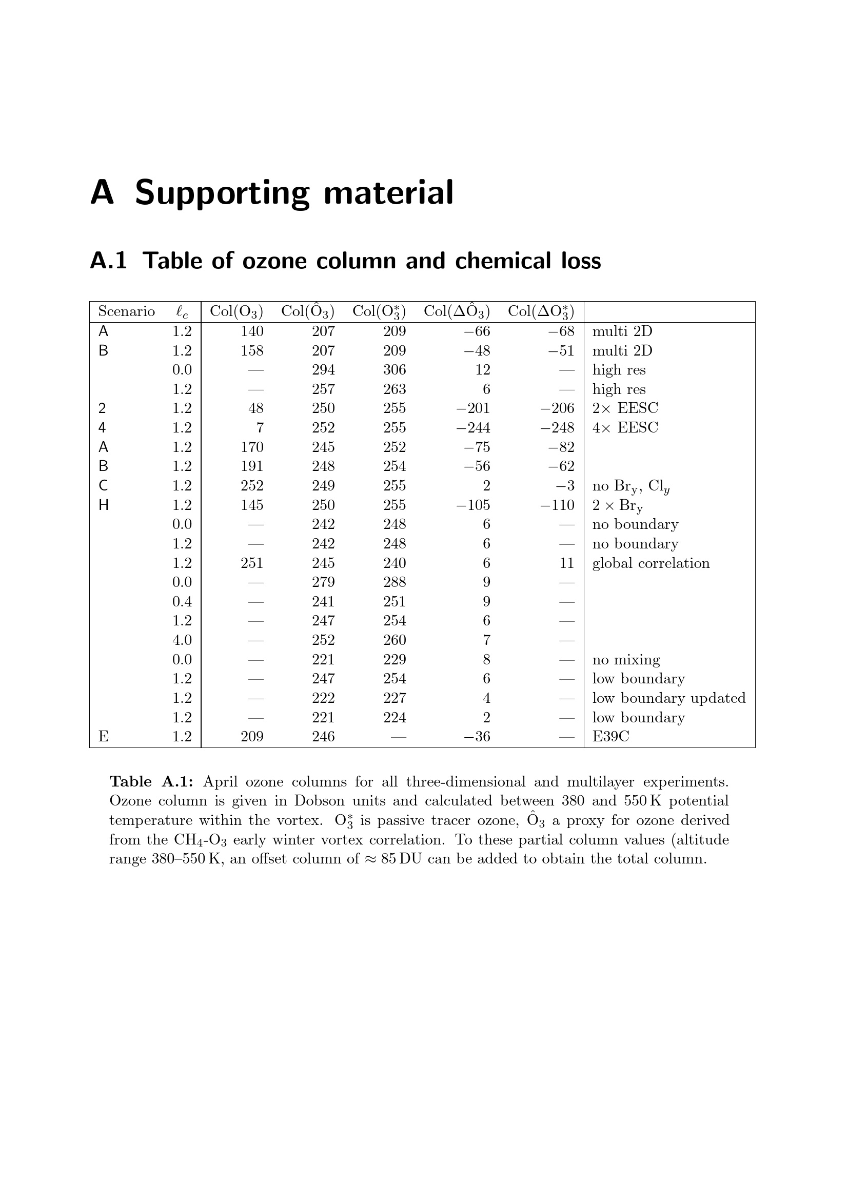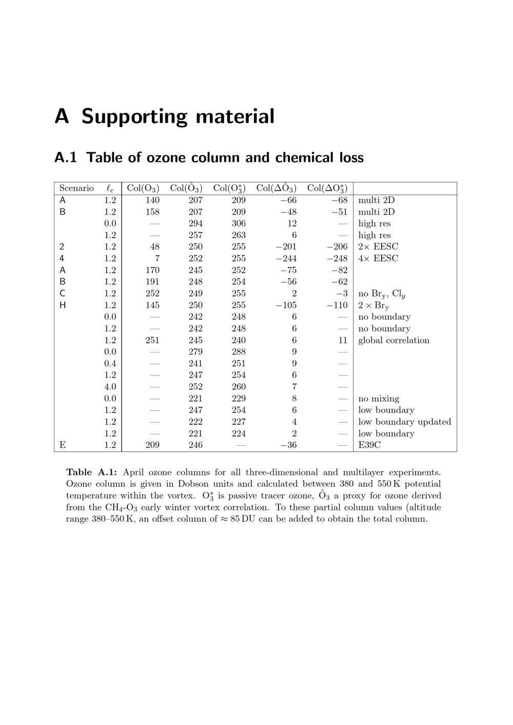A.1 Table of ozone column and chemical loss