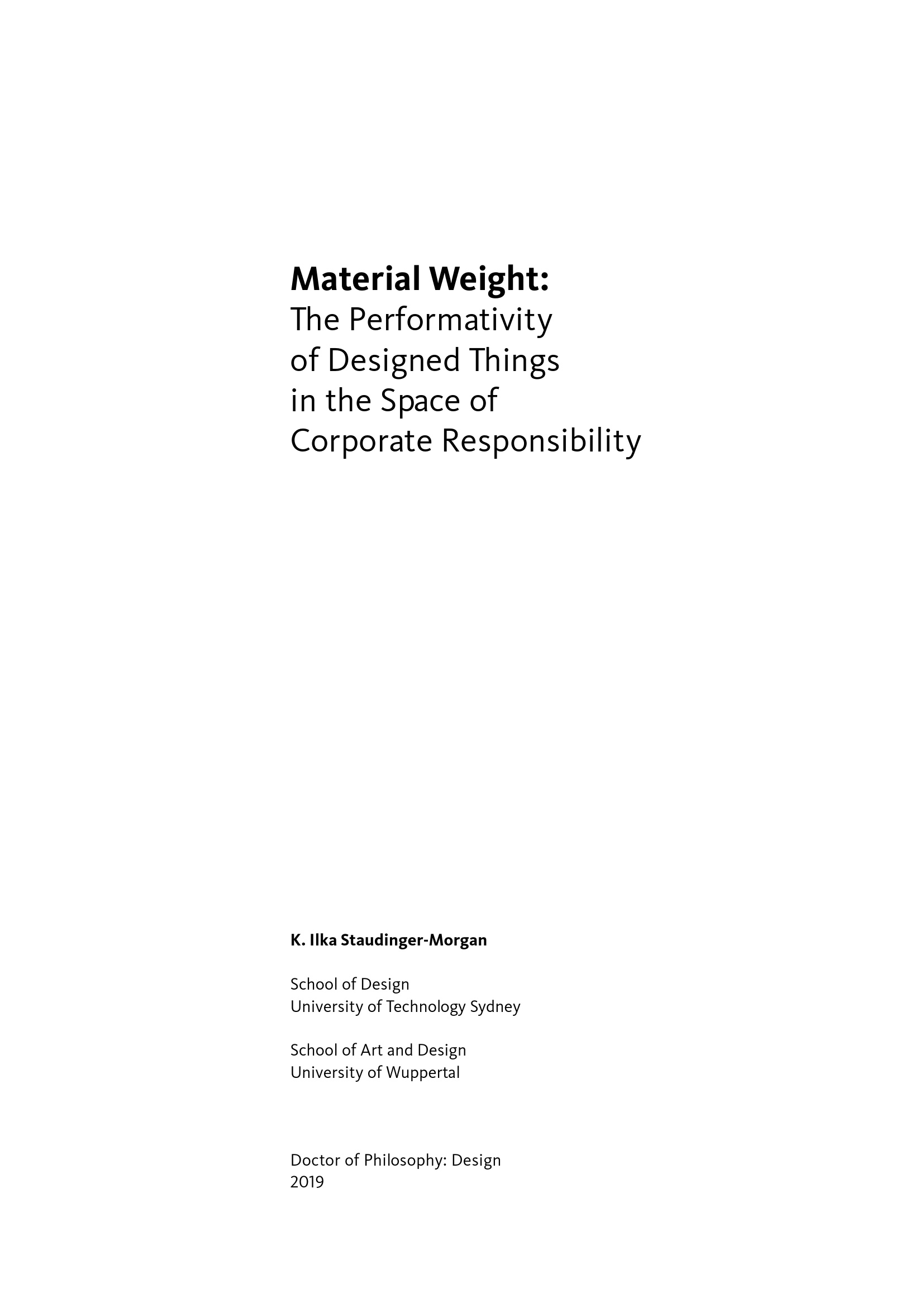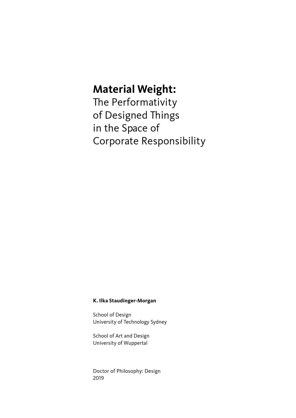 Material weight : the performativity of designed things in the space of corporate responsibility / K. Ilka Staudinger-Morgan