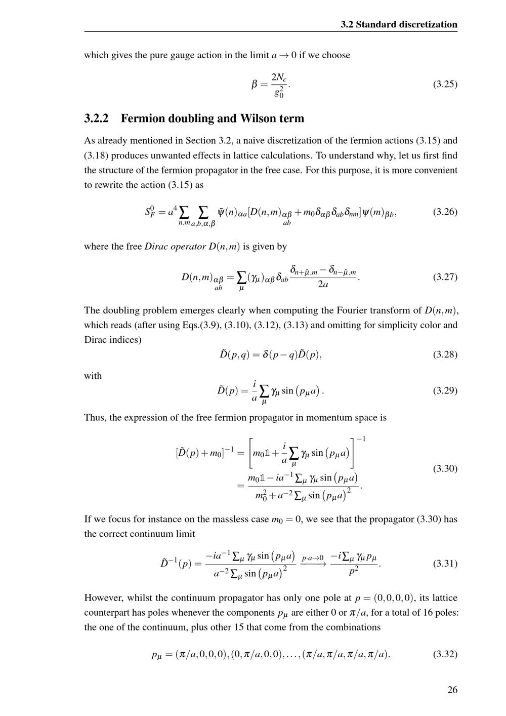 3.2.2 Fermion doubling and Wilson term