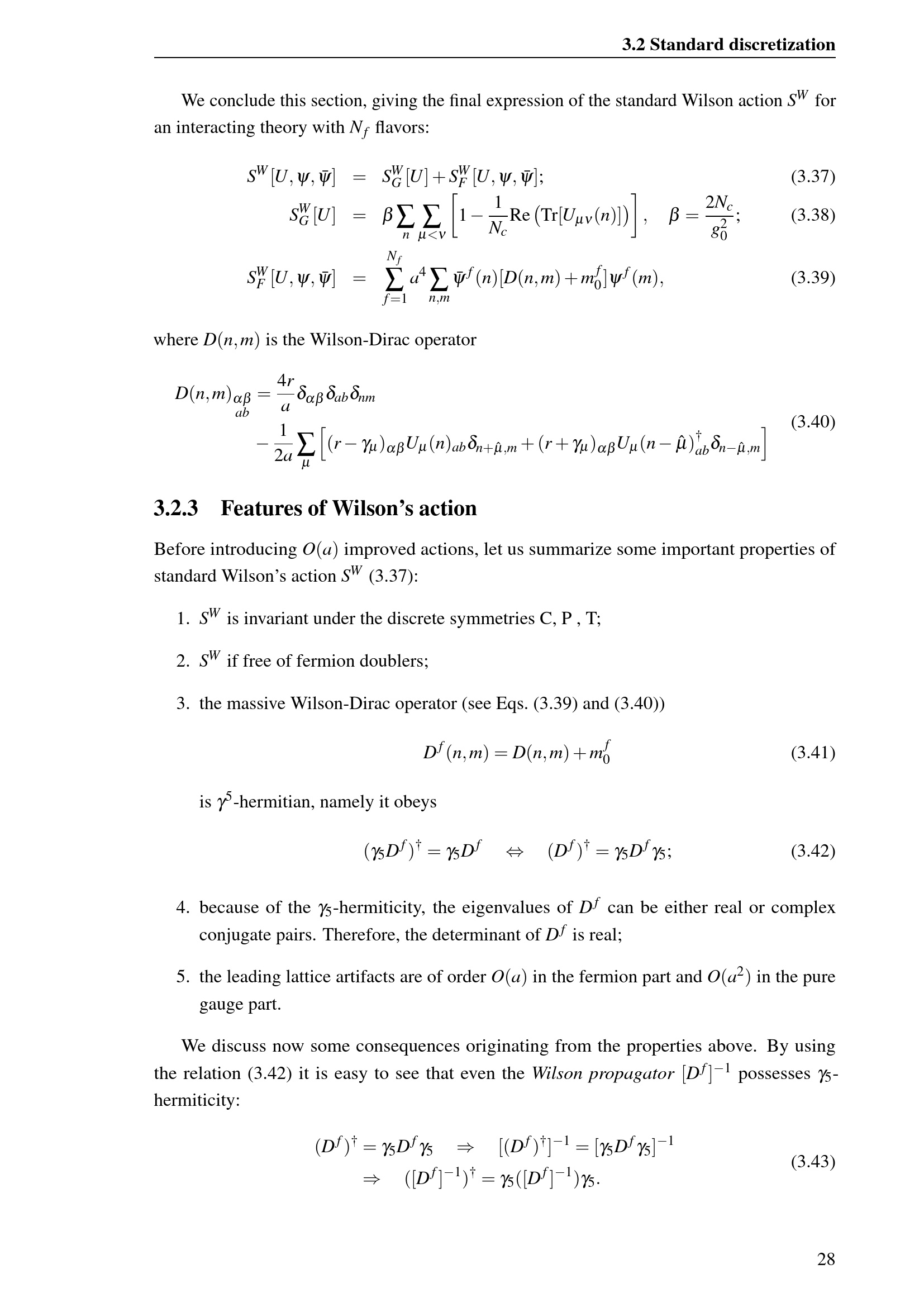 3.2.3 Features of Wilson's action