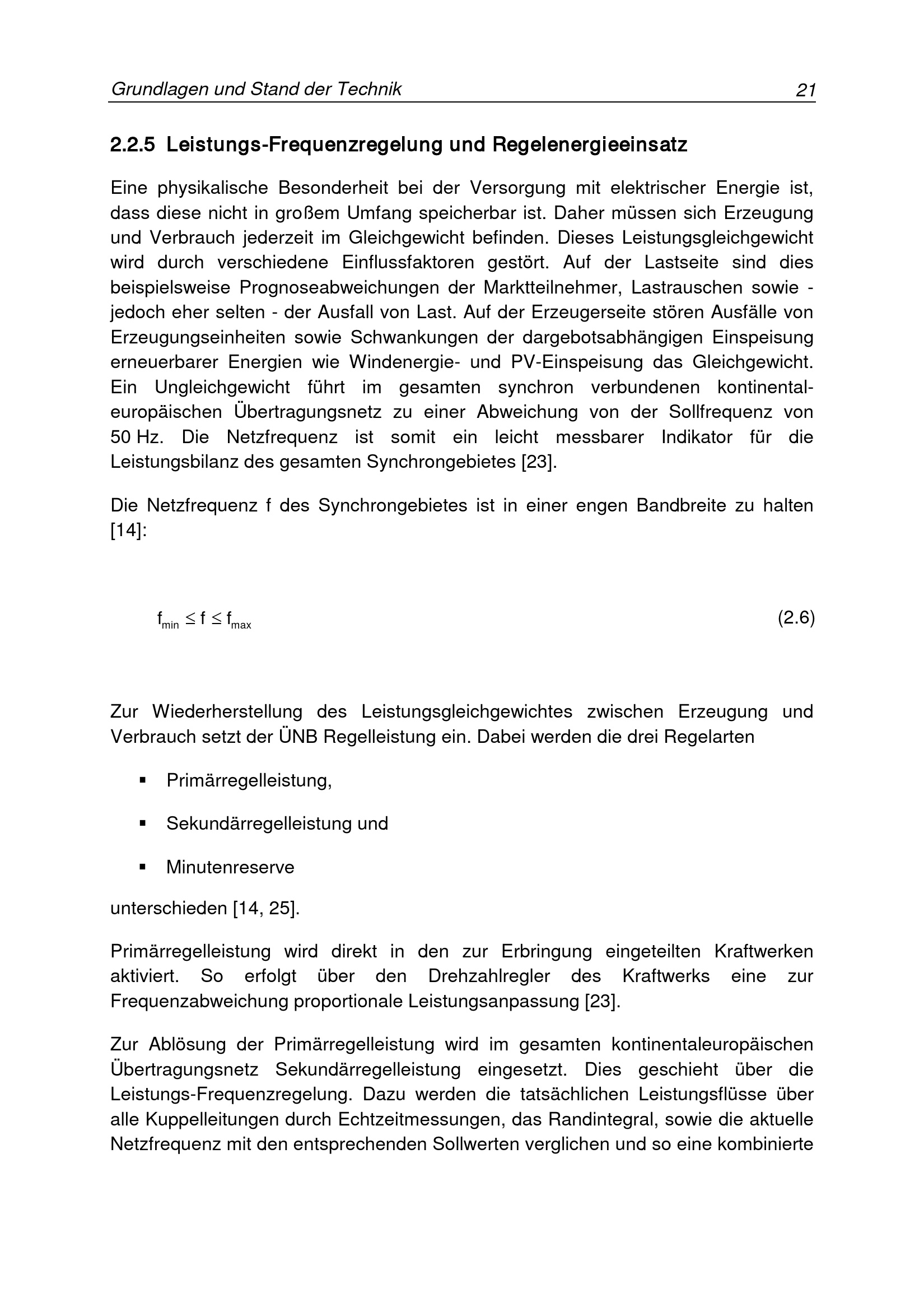 2.2.5 Leistungs-Frequenzregelung und Regelenergieeinsatz