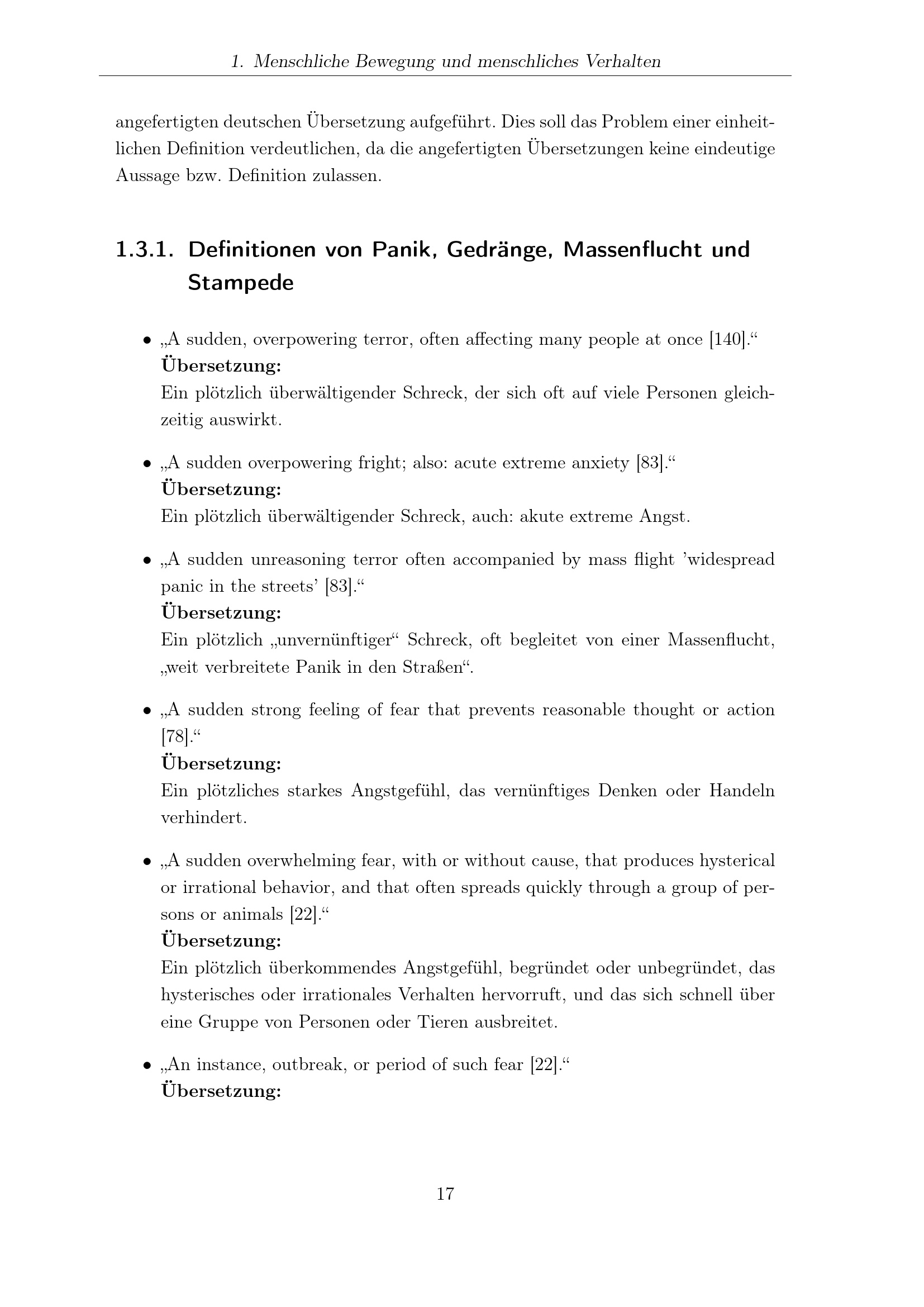 Definitionen von Panik, Gedränge, Massenflucht und Stampede